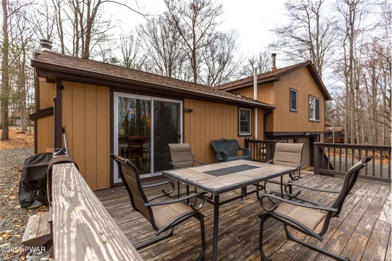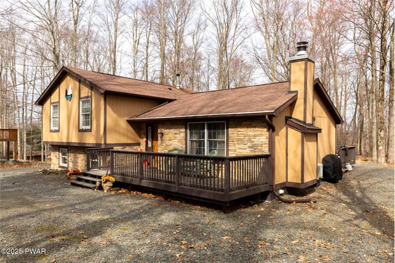 Welcome to this beautiful, 3 bedroom, Bi-Level in Wallenpaupack Lake Estates! Home boasts detailed woodworking throughout its open floor plan flooded with natural light. Inside find spacious eat-in-kitchen and dining area with sliders to deck, an oversized loft and an inviting family-room with a wood-burning fireplace. Home is complete with a split air and heat system in dining area. Huge driveway with lots of parking! Most Furnishings are available.
