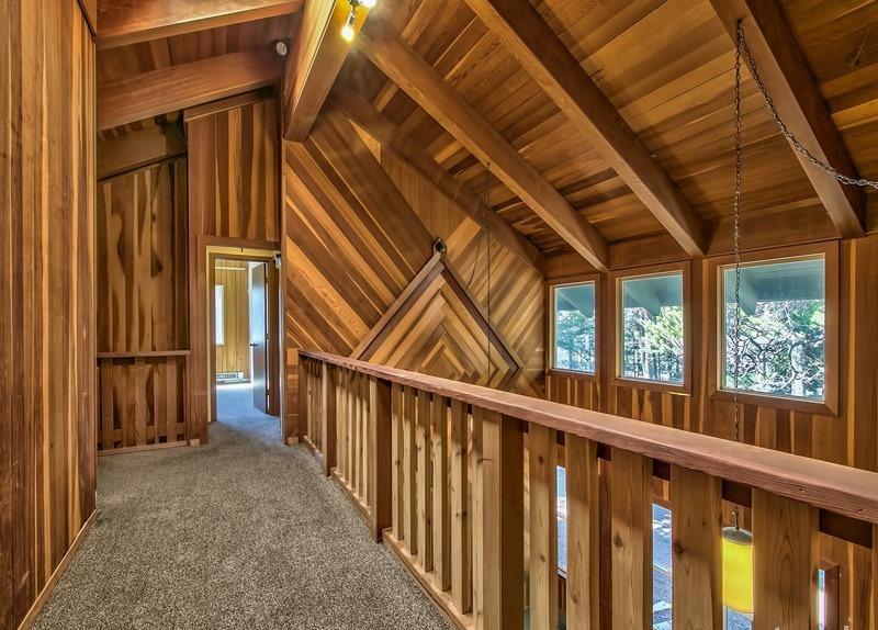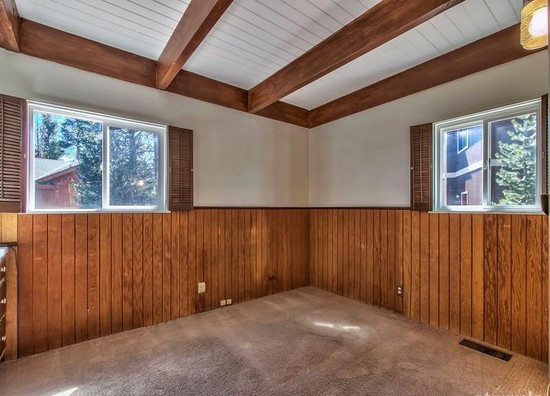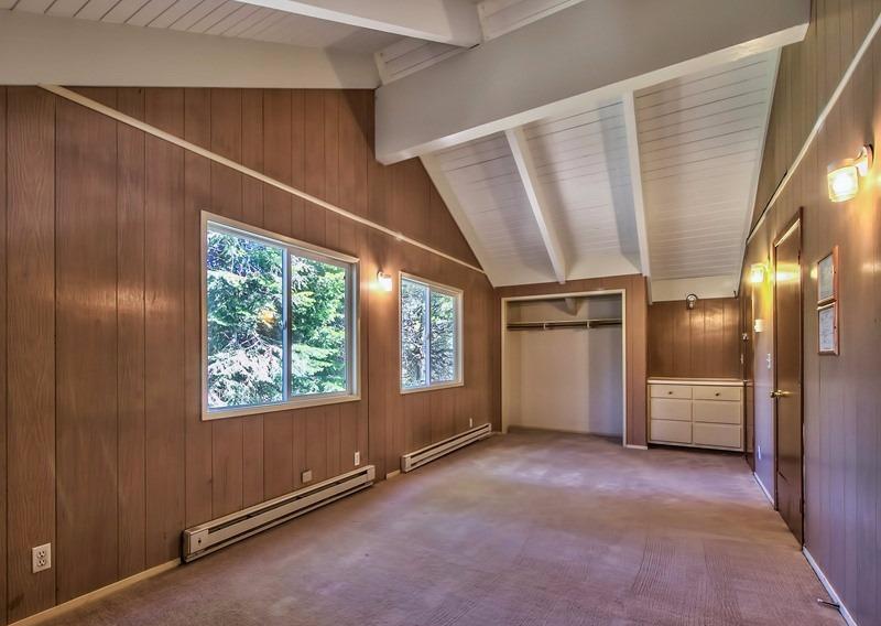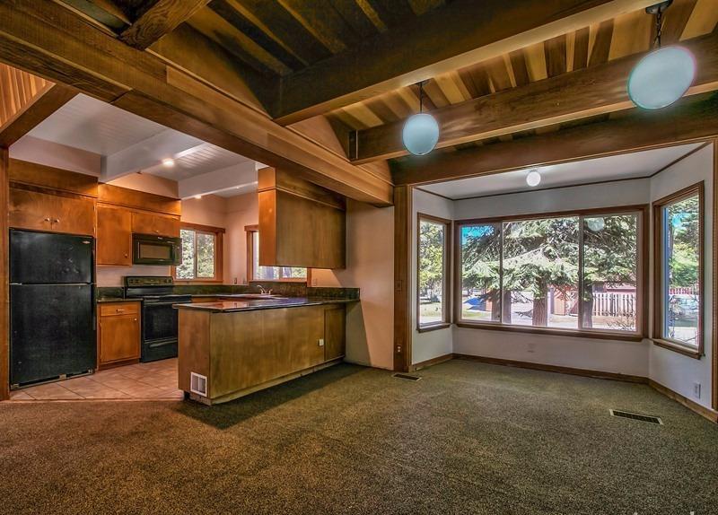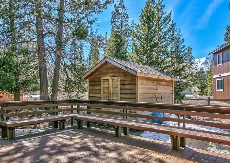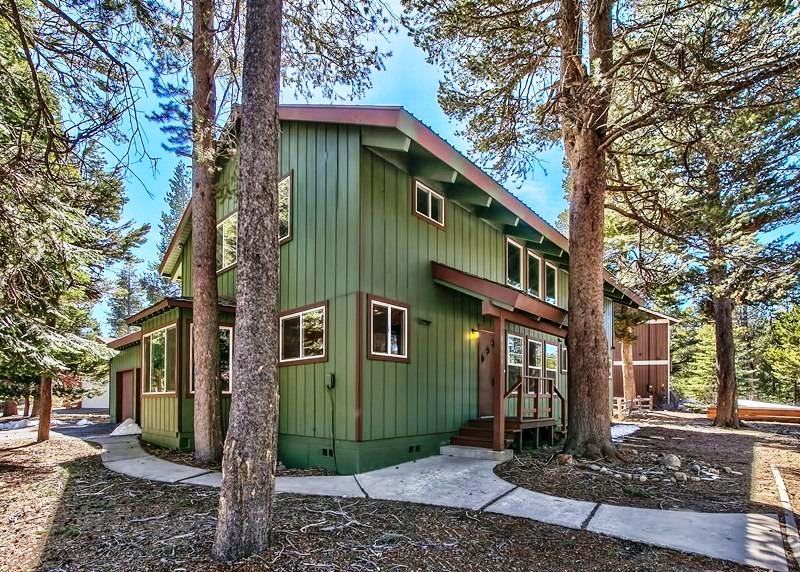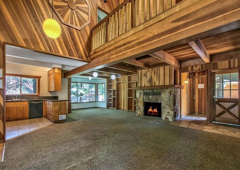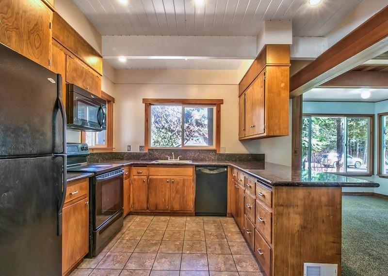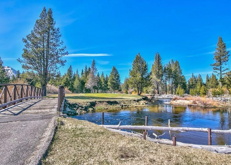 Spectacular location just steps to the Golf Course and a half block to Forrest Service land access to the beautiful Upper Truckee River. The large approximate hundred by hundred foot corner parcel is a spacious setting for this two story 2,485 square foot 4+ bedroom, 3 bath home with a big two car garage, sunny back deck and a large solid newer shed. Great Room with two story beamed ceilings in the living room section, rock fireplace, kitchen with Granite counters, huge separate pantry/laundry, and a big bay windows dining area. Two bedrooms, two baths downstairs and two more bedrooms, a bath