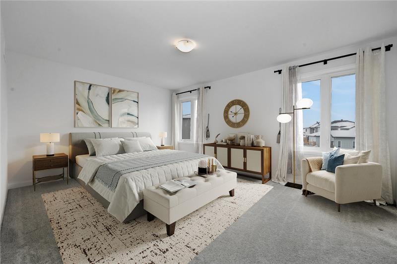 Bright 2022 Longwood Onyx in Morris Village with 3 beds, 2.5 baths, hardwood main floor, designer kitchen, luxe primary suite, upper laundry, and a versatile basement. Turnkey and family-friendly.