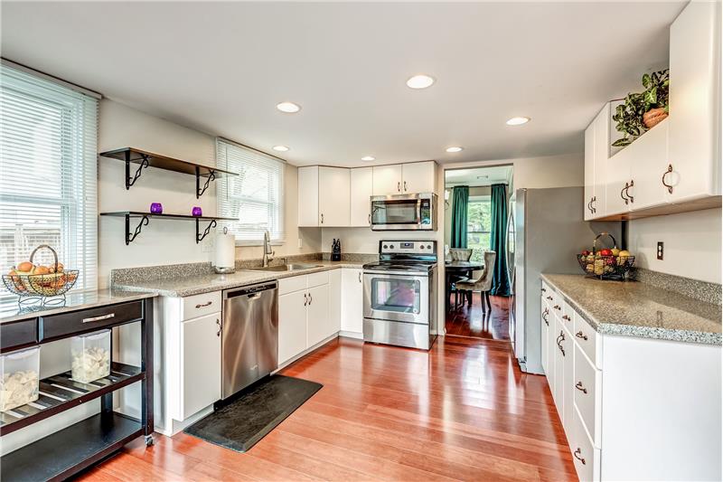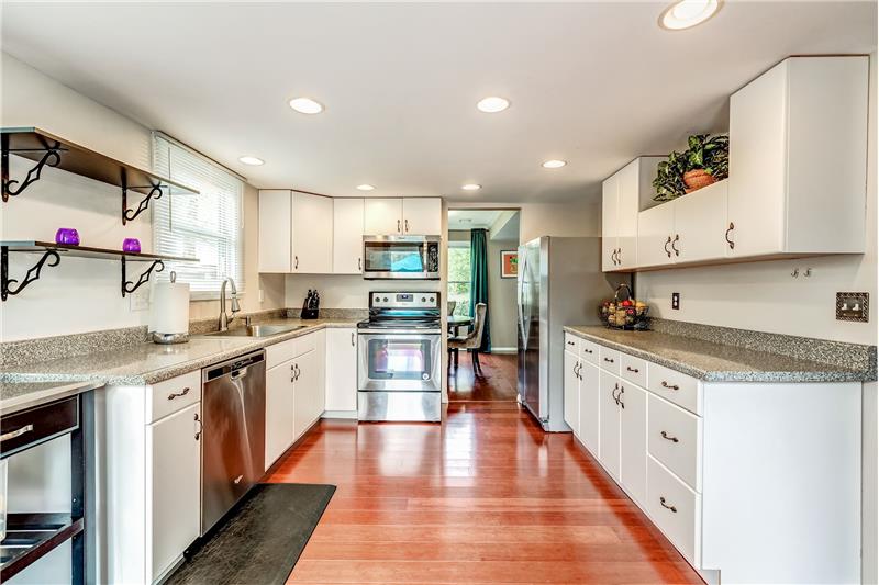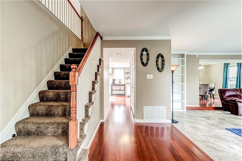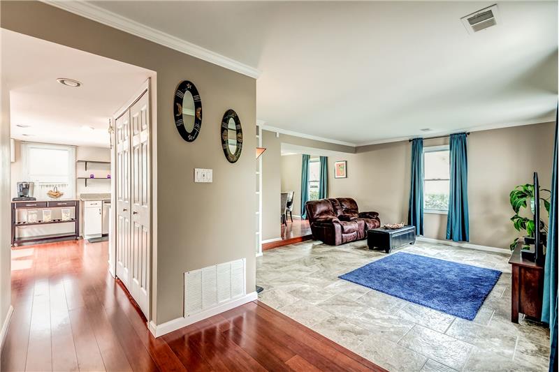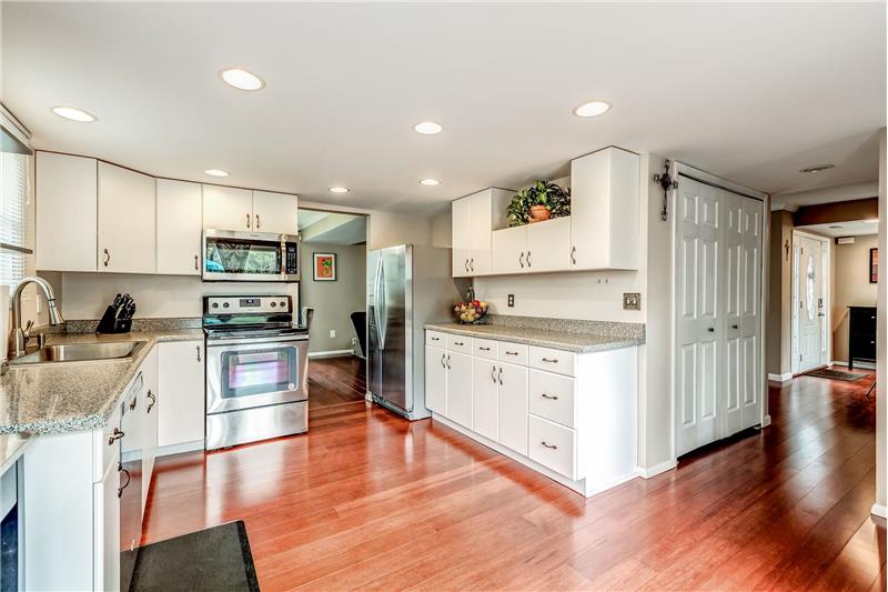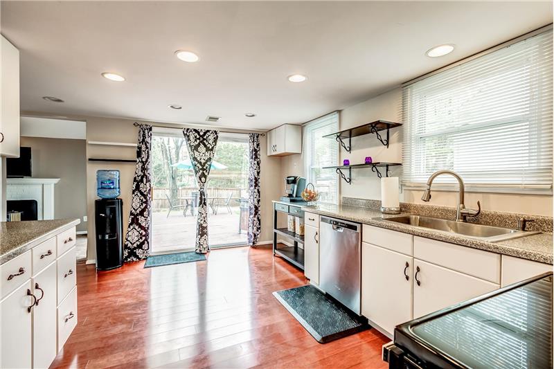 Wonderful 2 story colonial with expansive addition making this home over 2500sqft. Foyer entry opens to gleaming wood floors leading through the open living room and separate dining. Large eat-in with stainless steel appliances, wood floor and sliding glass door out to large deck and fenced backyard. Main level family room with fireplace, vaulted ceiling with ceiling fan also with a sliding door out to fenced level backyard. Convenient mudroom with exterior exit and entrance to the oversized 2 car garage.