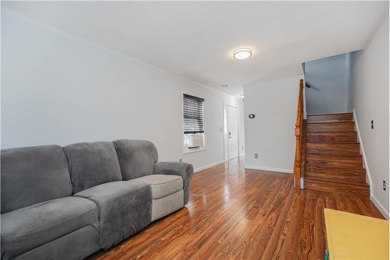 Come see this lovely 2 bedroom, 2 bathroom semi-attached home! First floor includes bright lighting, living room & kitchen. The kitchen has access to the back yard deck & backyard with a new 10' x 12' shed. There is also plenty of space for outdoor entertainment. Second floor includes two bedrooms, plenty of closet space & a full bathroom with a sky light. Basement is finished with extra space, bathroom, closets, washer & dryer! This home is google home nest protected! Roof is new! Call us today!