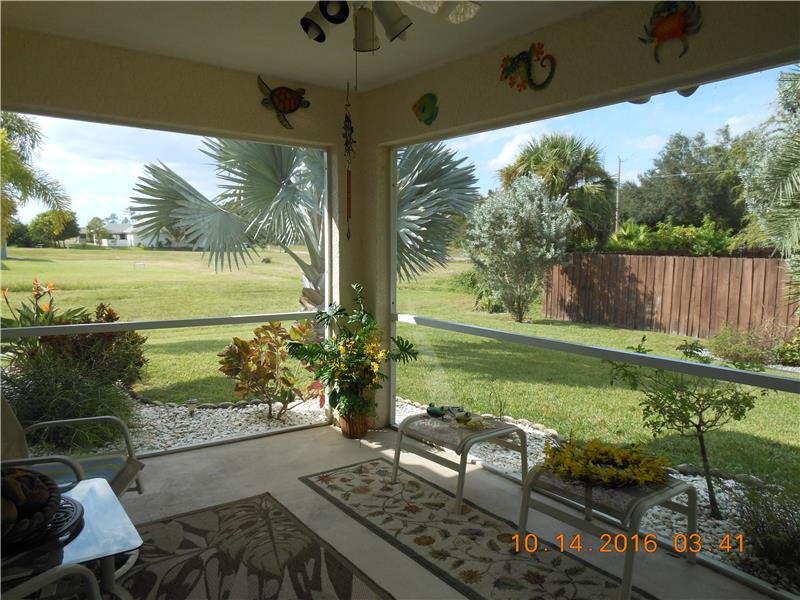 Meticulously maintained home in Gator Circle area. It boasts a very appealing floor plan with plenty of space for formal dining as well as a cute kitchen bar/island to enjoy your meals and a split floor plan for privacy. There is a charming screened front entry to sit and enjoy your coffee as well as a lovely screened lanai in the back of the home to enjoy the breathtaking landscaping this home has all around it, with sprinklers to keep it lush and healthy.