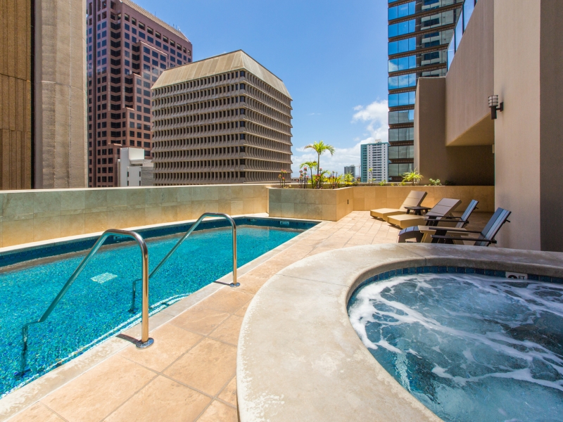 URBAN OASIS: Luxury condo with the quality, security and amenities you need to enjoy the convenience of Downtown living. You'll love the access to shopping, theater & restaurants in the Pacific's most beautiful city. Highest half-floor unit in the building, high ceilings and spectacular ocean, mauka & Downtown views. Perfect for professionals and empty nesters!
