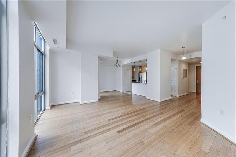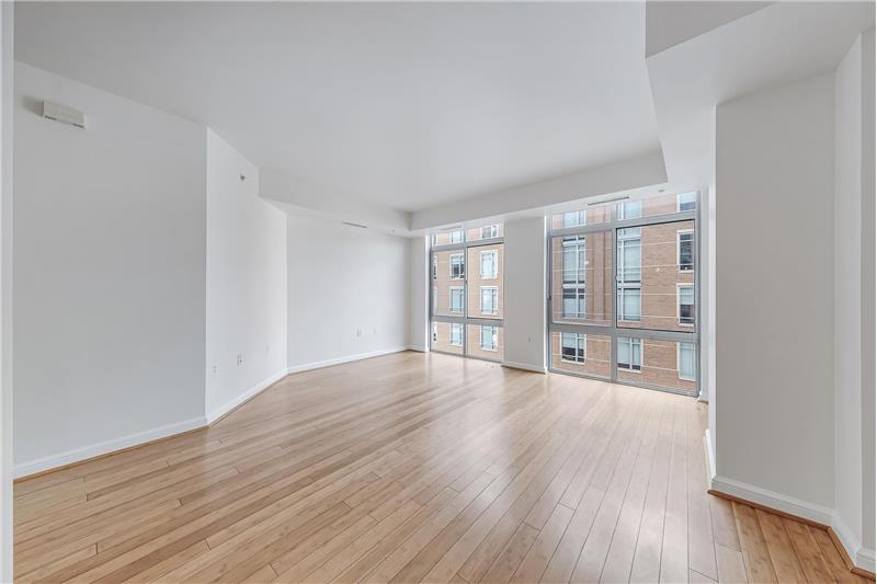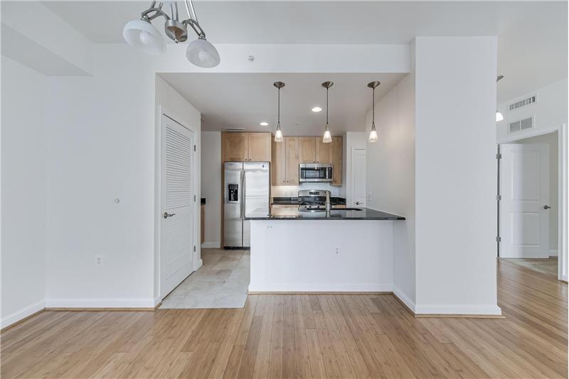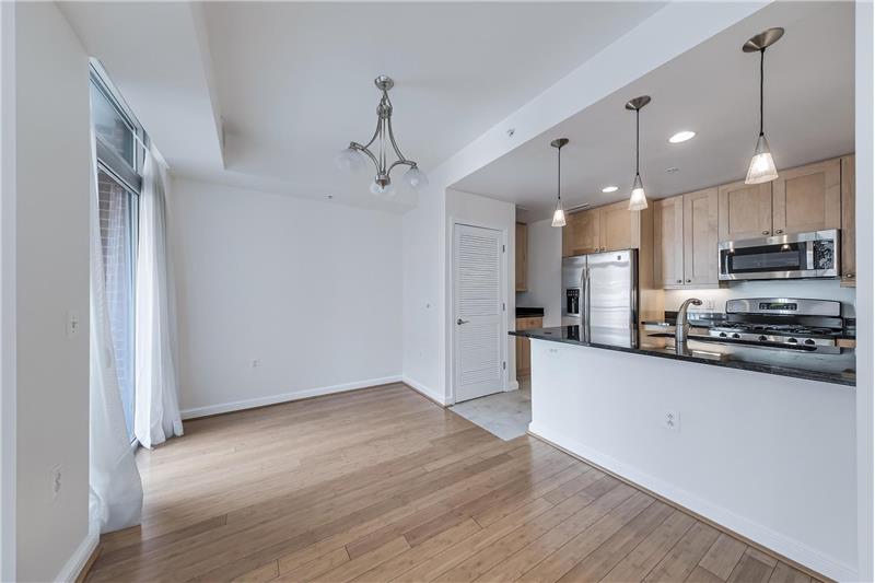 AVAILABLE FOR IMMEDIATE MOVE-IN! Light-filled 1 bedroom plus den/possible 2nd bedroom with 2 full baths in Midtown at Reston Town Center. Beautiful bamboo hardwood flooring throughout foyer, hallway, living room, and dining room. Kitchen overlooking living/dining area offers granite countertops, breakfast bar, and stainless steel appliances. Spacious living room with floor to ceiling windows. Separate dining room with access to 2nd balcony. Primary suite features ceiling fan, closet with custom built-ins, and access to private balcony. Spacious primary bath with dual vanities. Convenient ...