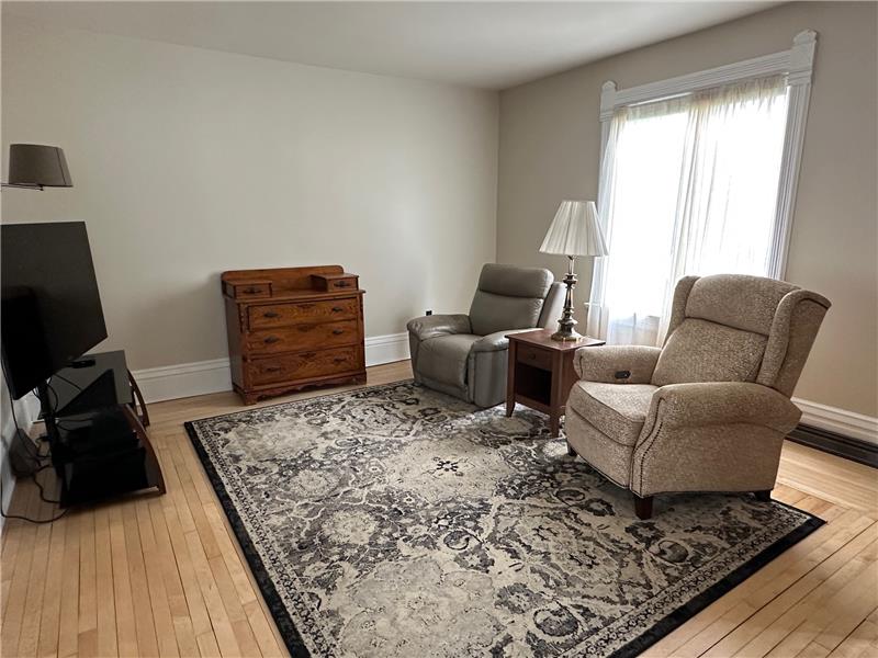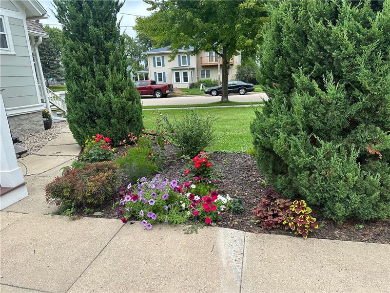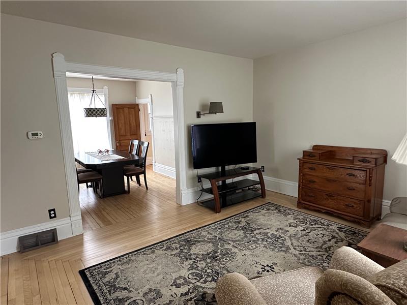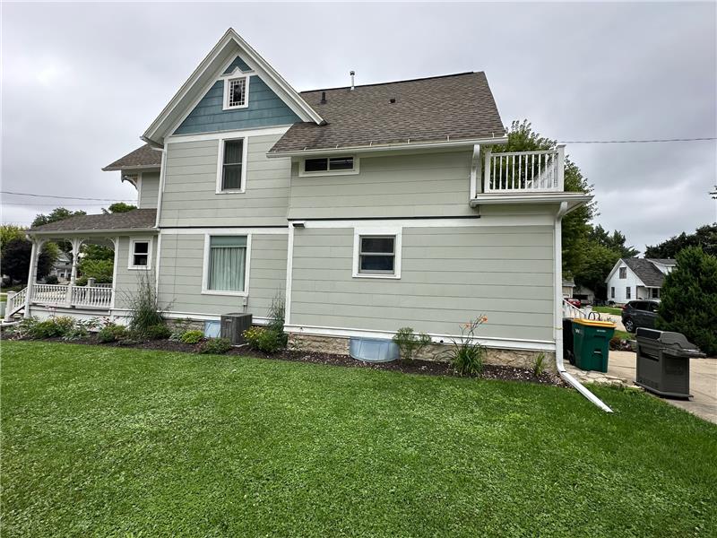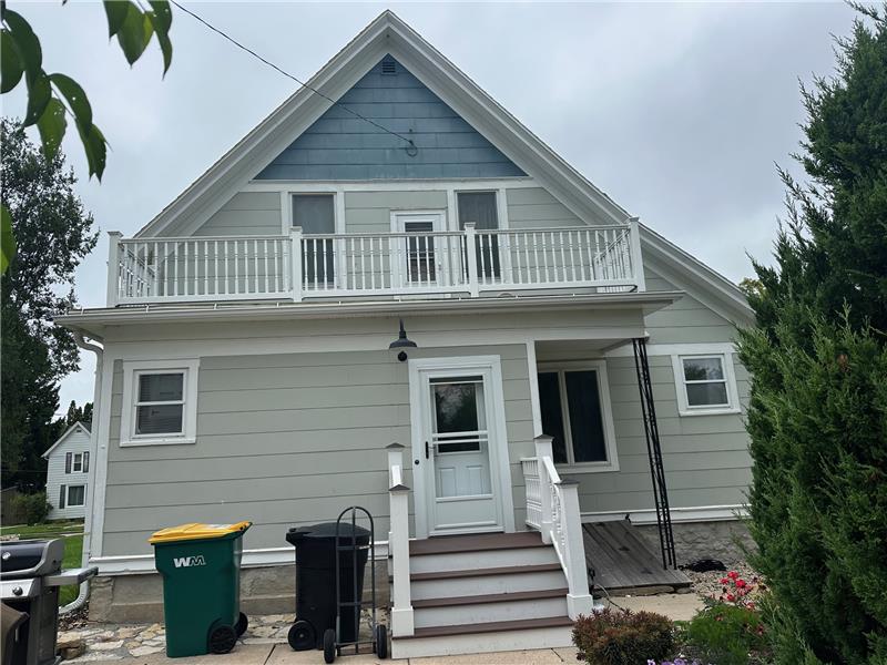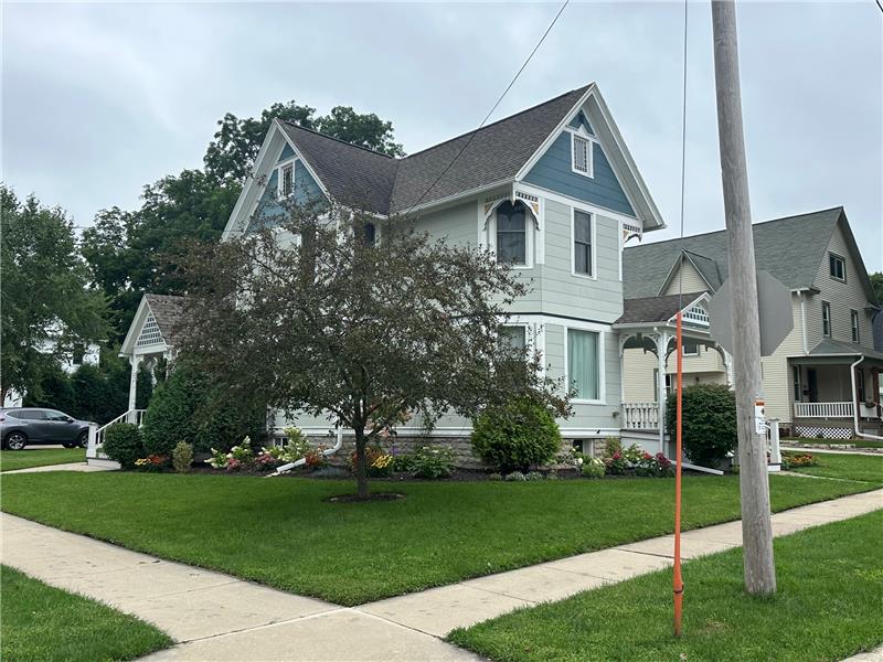 Extremely well maintained Queen Ann Style 2-stry home built around the turn-of-the-century & many upgrades over the yrs. Home is on a corner lot having 4-bdrms, 2-full baths, recently remodeled lrg eat-in kit w/Quartz countertops, newer appls, orig beautiful hrdwd flrs(some area rug style hrdwd flrs)& drs, frml dining rm, 2-main flr living rms that could possibly be converted to a main flr bdrm,2nd-flr bdrm balcony, 2nd-flr bthrm as sep shower & tub, lots of strg, full bsmnt w/walkout entrance.Three-car garage is an older carriage house w/upgrades.Seller will give 1 yr Home warranty at closing