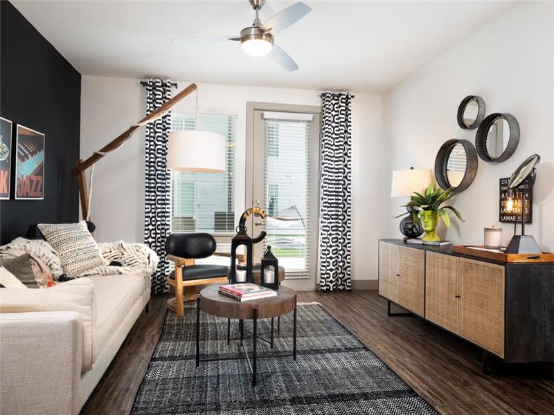 Experience upscale living in a community designed for both style and convenience. These spacious apartments feature open-concept layouts with modern finishes, including gourmet kitchens with stainless steel appliances, quartz countertops, and custom cabinetry. Expansive windows bring in natural light, creating a bright, welcoming atmosphere throughout each home. Residents enjoy a host of premium amenities, such as a resort-style pool with a sundeck, a fully-equipped fitness center, and a resident lounge perfect for relaxing or socializing. Beautifully landscaped courtyards offer peacef ...