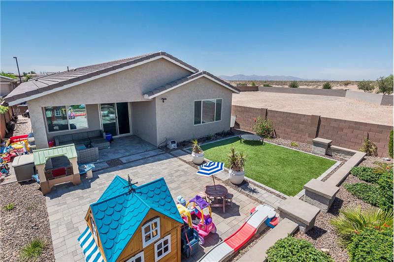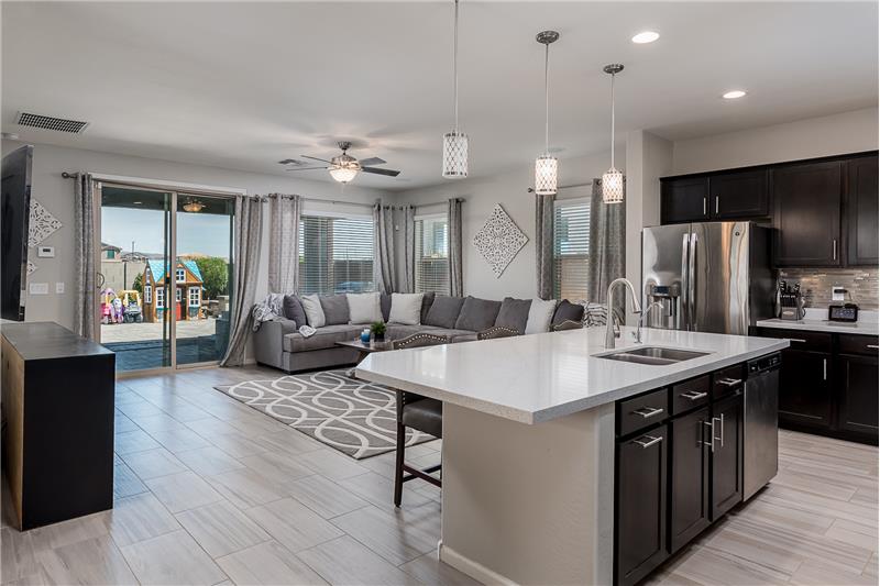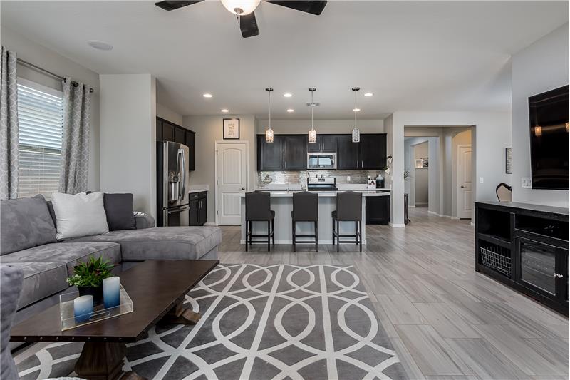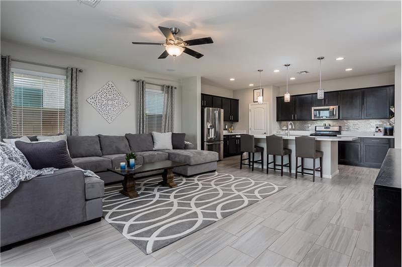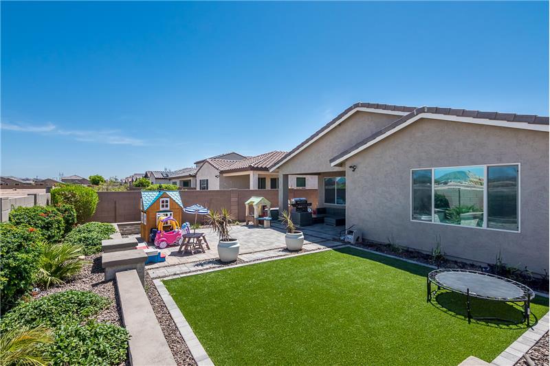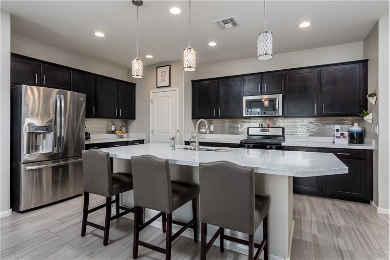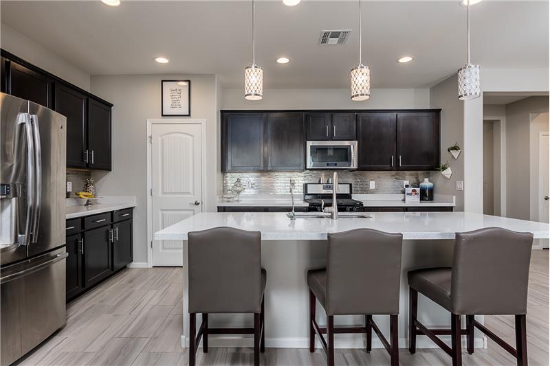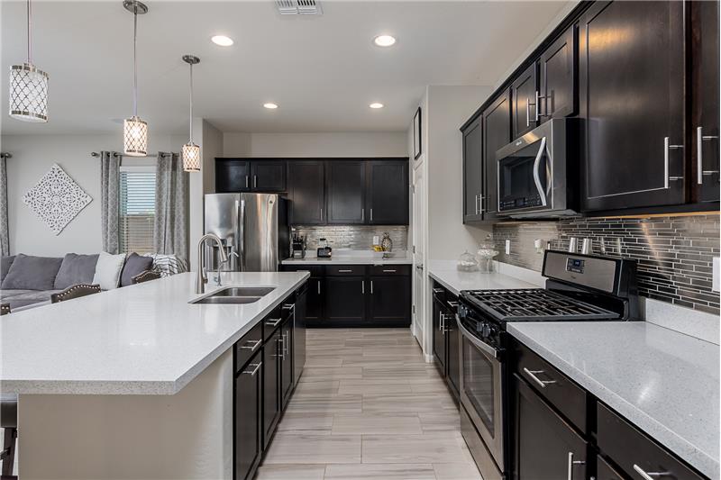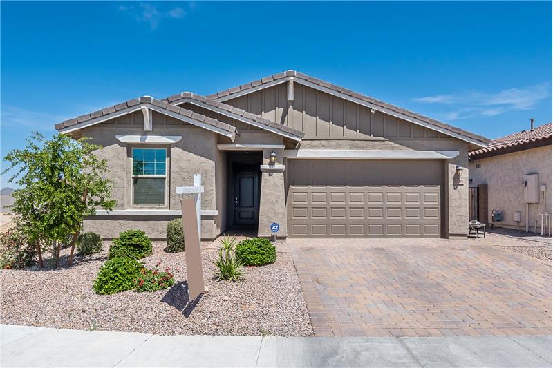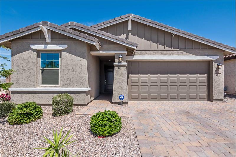 The brick pavered drive and luscious landscape adds to the curb appeal and is just the beginning of the experience with this beautiful home! With 3 bedrooms, 3 bathrooms and a den, this great room floor plan will cater to any buyer. The kitchen features quartz counter tops, metal tiled back splash, RO system, gas stove and plenty cabinets for storage!! The garage has additional florescent lighting, epoxy flooring and cabinets for additional storage as well. The extended lot is fully landscaped with turf that is perfectly manicured everyday and more brick pavers.