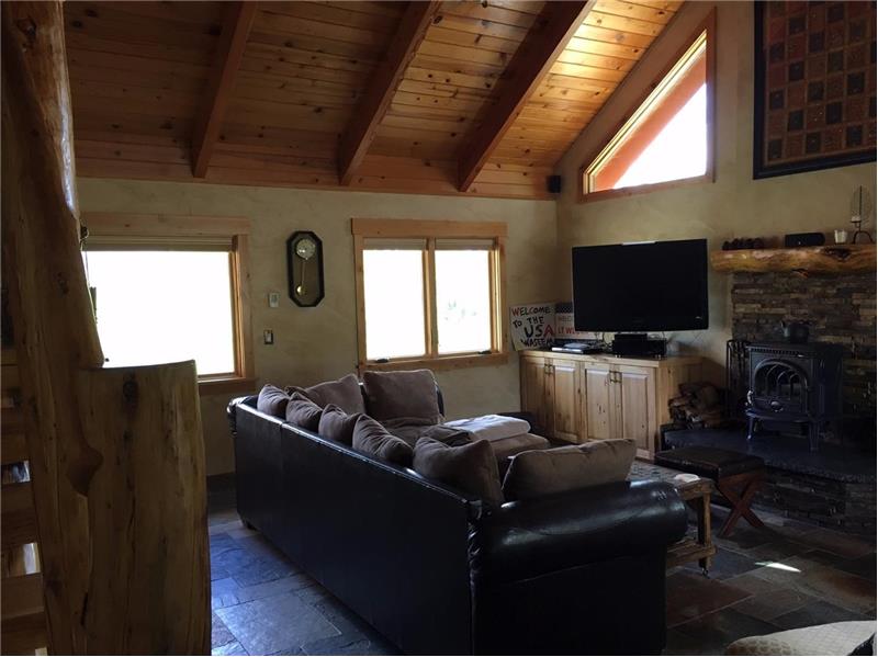 Truly an Immaculate Mountain Retreat with Beautiful Mountain Views! This 12,000+ property is adjacent to conservancy land making it very serene. The whole inside has been completely remodeled. The entire 1st floor has heated natural stone floors, hickory kitchen cabinets with granite counter tops, an island on wheels, and a gas wall-mounted fireplace. The living room has a wood free-standing stove, with a custom lodgepole stairway leading upstairs. The upstairs hallway has hardwood floors leading to the 3 bedrooms and full bathroom. The master bedroom has a freestanding gas stove and a large w