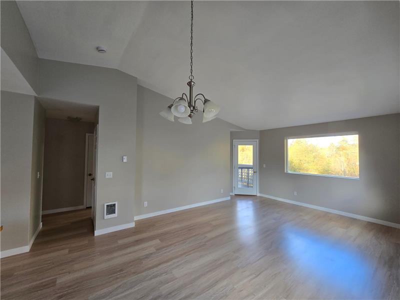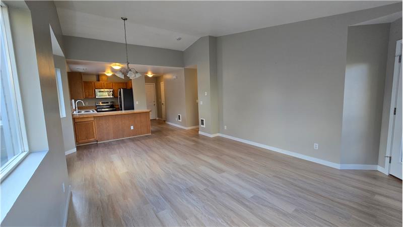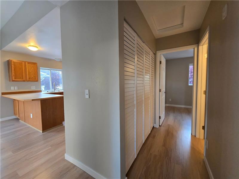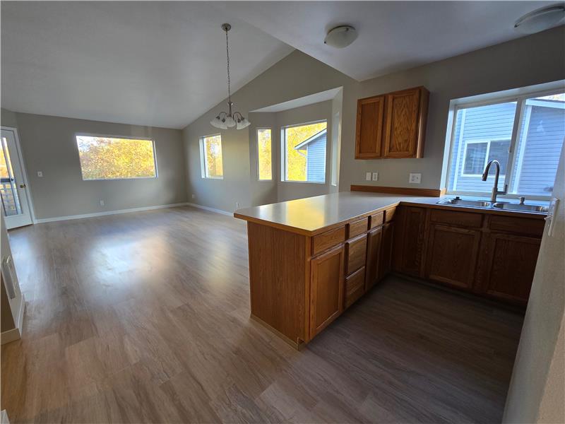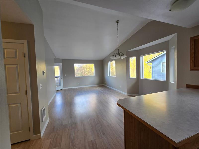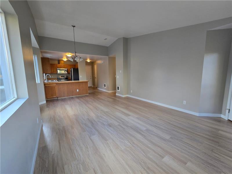 Top floor corner unit with beautiful views of adjacent park. Light finked open floor plan with vaulted ceilings and bay window. Private balcony overlooking green space. Updated and ready to move in.New laminate flooring throughout/ All new kitchen appliances. Fresh paint, new doors and trim package. New blinds. Pantry. Storage closet. Enclosed hall laundry area with washer and dryer. Secluded complex with large lawn areas. Covered parking space. Country Estates is conveniently located to shopping and restaurants. Close to arterial and freeways. This is a great place to call home.