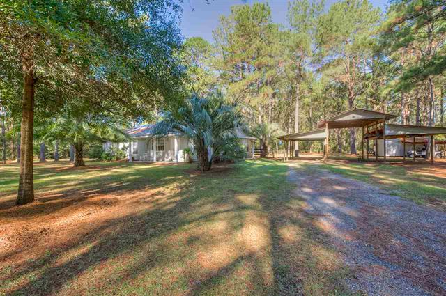 Quiet, private, and easy to maintain! This 3-bed, 2.5-bath home is perfectly situated in gorgeous Jefferson County, a stone's throw from Tallahassee but with all the benefits of country living. Move-in ready, this open layout is perfect for entertaining and offers beautiful natural views, ample bedroom space, a large screened back porch, separate grilling space, and over 5 acres with room for horses. Parking won't be a problem with an expansive 3 vehicle carport area large enough for an RV, boat or horse trailer.