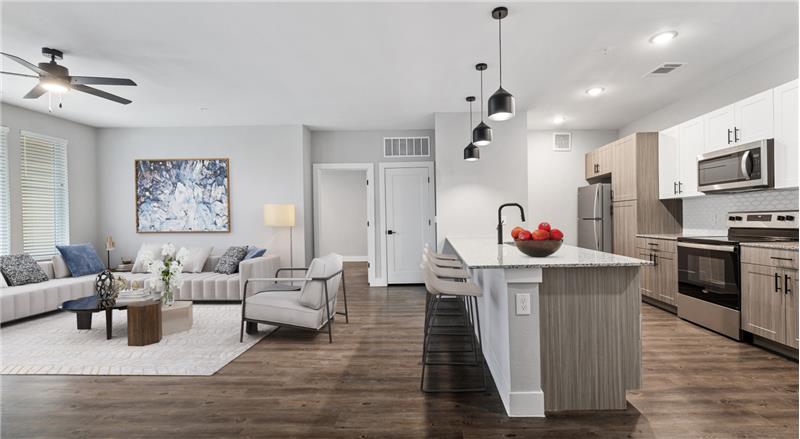 This modern apartment community offers a perfect balance of comfort, convenience, and style, making it an ideal choice for those looking for a vibrant yet relaxing place to call home. Spacious, open-concept floor plans feature contemporary finishes, including wood-style flooring, oversized windows that allow natural light to flood the interiors, and kitchens equipped with stainless steel appliances, granite countertops, and custom cabinetry. Residents can enjoy a variety of upscale amenities, such as a resort-style pool, a fully equipped fitness center, and a stylish clubhouse perfect ...