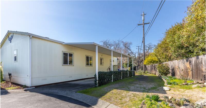 This manufactured home is located in an incredible park-like setting within the Bella Vista Mobile Home Park. It may have in fact, the largest backyard in Bella Vista. Minutes from world-famous restaurants, tasting rooms, shopping, and golf. Built in 2013. This 3 bedroom / 2 bathroom home has an open floor plan with a large living room/dining/kitchen area. Back deck has an electric canvas awning with a fabulous patio below. Enjoy the huge backyard with a Norway Spruce tree, two fig trees, one persimmon, one lemon, and one pear tree.