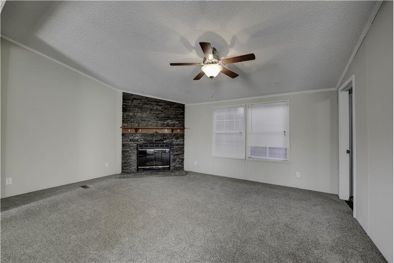 1997 Doublewide with 3 bedrooms, 2 bathrooms on 0.59 acres of land. Home features new carpet, new paint, new roof, fireplace, and garden tub. Possible owner finance with 10% down.