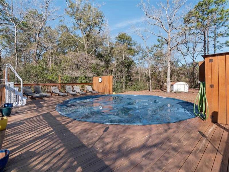 Live humbly in serenity on a secluded five acres in Crawfordville. Enter your oasis through a private electronic gate and enjoy high-end features such as a fully-updated kitchen with stainless steel appliances, granite countertops, and newly refinished cabinets. If low-maintenance is a must, there is new LVP in all wetrooms and tile in every other room - not a lick of carpet in sight. If you love spending time outdoors, this home makes it easy. With a screened back porch, above-ground pool with a custom deck, and freshly poured concrete on the patio complete with a porch swing, you'll never wa