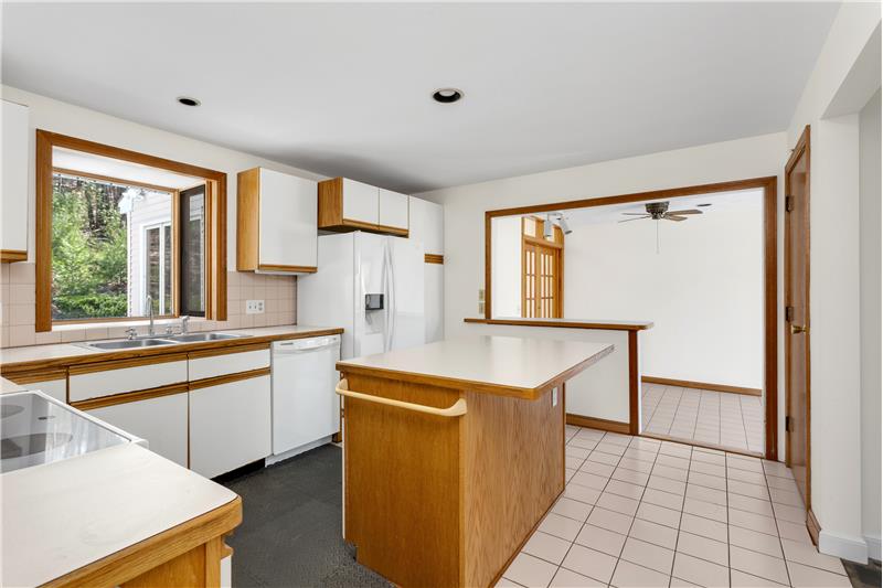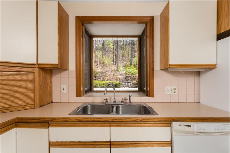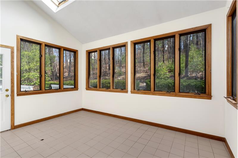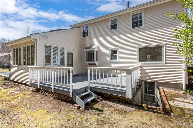 Handyman and contractor special! - 4 Bedroom 2.5 Bath Colonial+2 car garage! Opportunity exists to update this home as you go. Enjoy watching the sunset in the spacious front living room, with a gas fireplace and bay window. There is a family room off the back with skylights, french doors and access to the back deck. Enjoy privacy on the back deck with the sounds of birds and nature. The kitchen and adjacent eat-in dining area are bright and great for entertaining. Four bedrooms, full bath and a loft/office space are on the 2nd floor with ample closet space. Hardwood floor and tile throughout