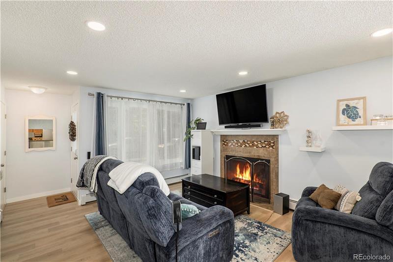 This condo feels like a townhouse, with added quiet thanks to a garage buffering the neighboring unit. The open floor plan offers modern living with an updated kitchen flowing into a spacious living room with a fireplace. The primary bedroom includes an en suite, plus two large bedrooms and another bath. Enjoy the private fenced patio, attached garage, and HOA perks like a pool, exterior maintenance, sewer, trash, and snow removal. Near trails, light rail, shopping, parks, and more!