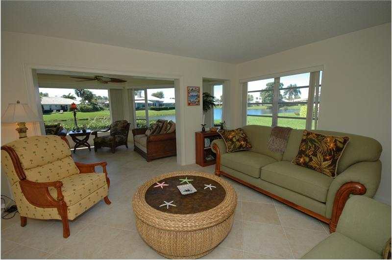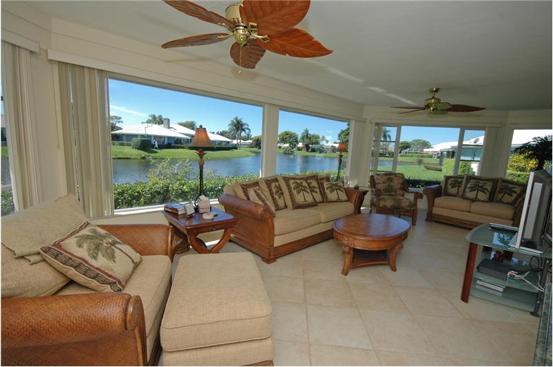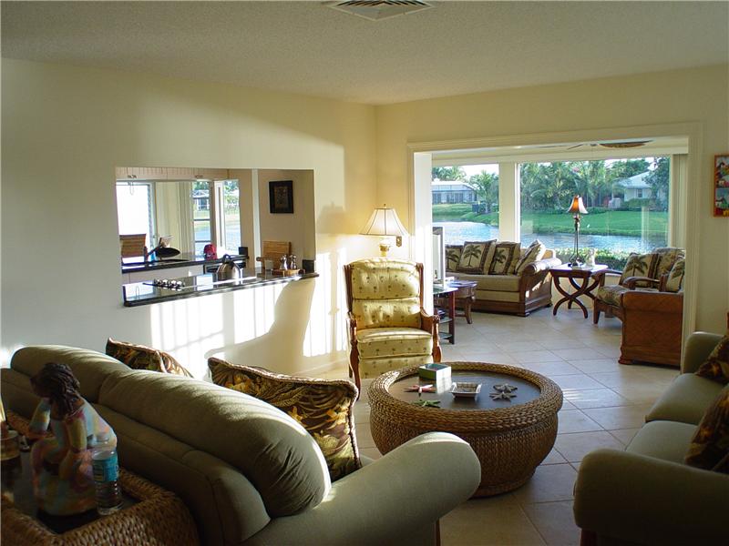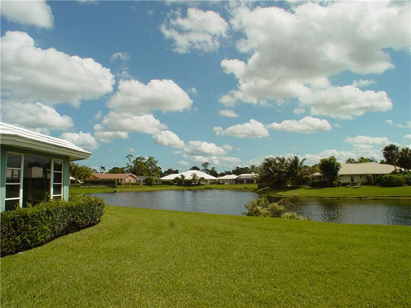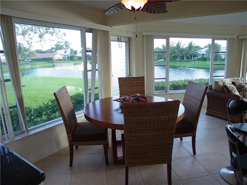 Delray Dunes Golf & Country Club. Super sweet free-standing villa, it literally lives just like a separate single family home! Spacious open floor plan with a definite beachy feel thru-out!! Cottage style solid wood cabinets in kitchen with a beautiful dark green granite and stainless steel appliances, breakfast room offers a matching serving bar and opens up to a light & bright florida room with windows wrapping around the room with lake views from every angle! Split bedrooms offers privacy for each room. Fresh and classic bathroom, bamboo wood floors in bedrooms. Ceramic tile throughout the