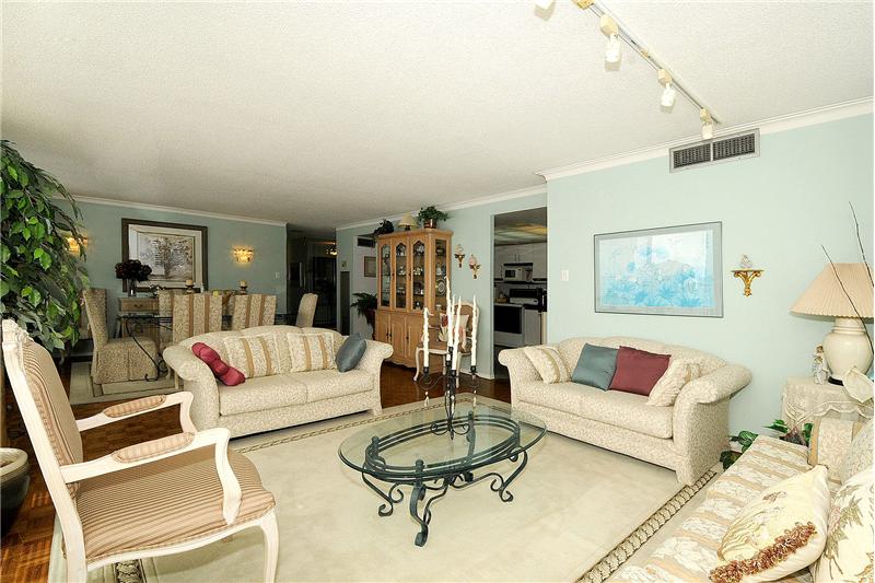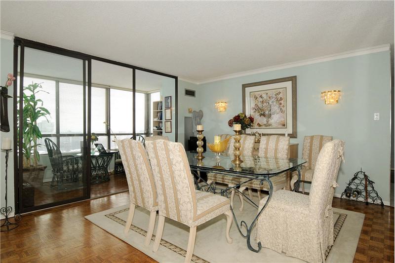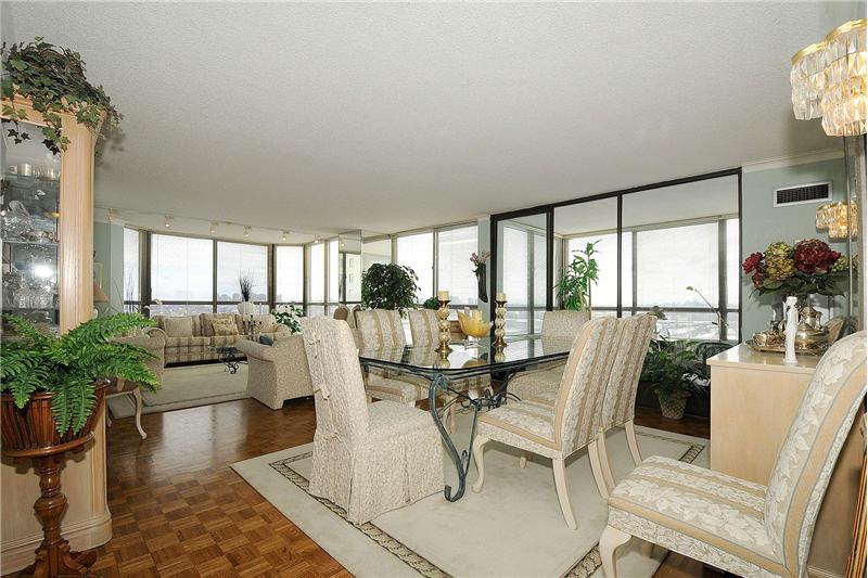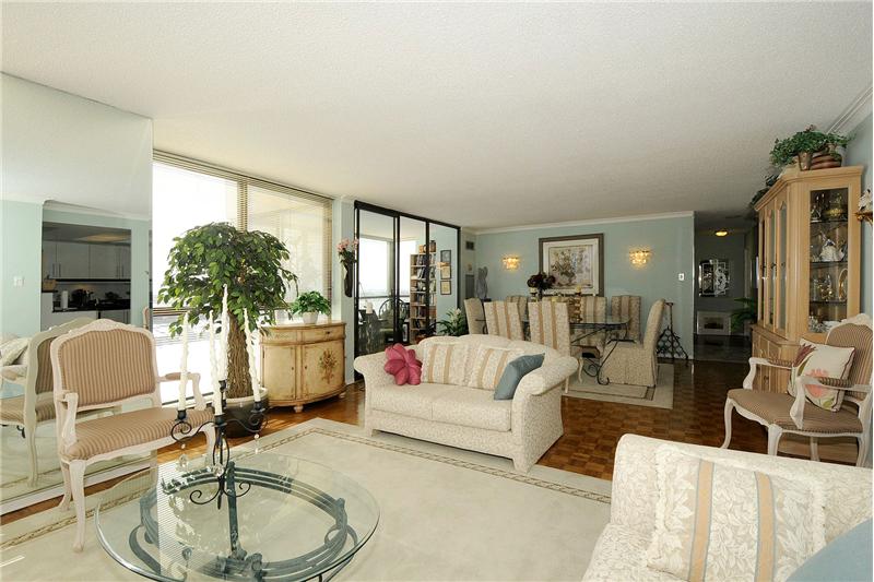 Bright & Spacious 2+2 Bedroom Unit With Amazing Views! Master Bedroom Features His/Hers Closets & 3 Piece Ensuite! Large Foyer W/Marble Floors. Granite Counters,Ceramic Floor/Backsplash & Large Pantry In Kitchen! Lr, Dr & Solarium Feature Large Windows Allowing Tons Of Natural Light! Custom Built Entertainment Unit & Bookcase In Den! Amenities Include: Exercise Room,Party Room,Outdoor Pool, Sauna, Security System, Visitor Parking & Beautifully Landscaped Grounds! Excellent Building & Reserve Fund!