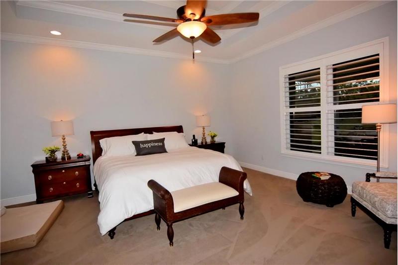 Exquisite, Craftsman/Modern style, high efficiency home, built in 2016 by Synergy Homes. This home offers a large, welcoming Great room with coffered ceiling, a sophisticated cooks kitchen with all GE Energy Star Stainless Steel appliances, white wood cabinetry w/ soft close drawers & doors, walk in custom shelving in the pantry and Quartzite counter tops. The split bedrooms boast a serene Master suite, complete with coffered ceiling, crown molding, plantation shutters & his/hers closets with custom shelving. The Master Bath includes a Jacuzzi tub & Sport shower w/ his/hers shower heads.