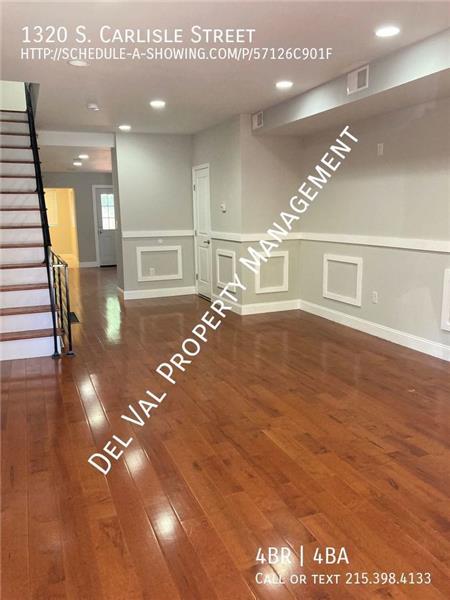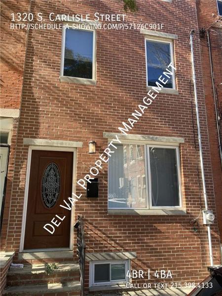 Beautifully Renovated 4-Bdrm 3-Story Townhome For Rent – 1320 S. Carlisle Street – Available Now in Newbold / South Philadelphia$2,665 / month plus utilities4 Bedrooms4 Bathrooms2,200 sq. ft.Street ParkingOther rooms in open floor plan include Eat-in Kitchen, Dining / Living area and finished BasementEat-in Kitchen has matching Stainless Steel appliances including 5-burner chef-inspired Gas Stove, double-door Refrigerator, Dishwasher, Built-in-Microwave, granite countertops, ample wood cabinets and hardwood floorWalk to public transportation along with bakery, deli’s, coffee shops, neighb ...