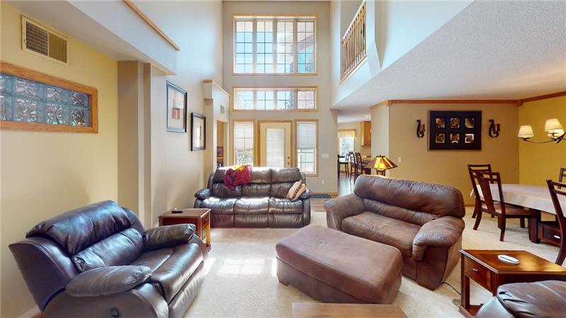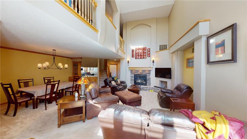 Welcome home to this move-in ready 2BR/3BA townhome in St. Michael w/a private gated patio! Inviting two-story living rm w/stone frplc & tons of natural light from a lg wall of windows + a skylight. Formal dining w/built-ins, eat-in kitchen w/granite countertops, center island, SS appliances, tile backsplash and walkout access to the patio. Main level also includes a spacious master suite w/built-ins, walk-in closet + a private BA w/separate tub/shower & dual sinks. The upper level features the 2nd BR w/turret alcove--perfect for a reading nook, full BA, loft & an unfinished bonus area...