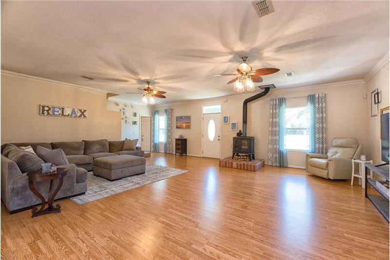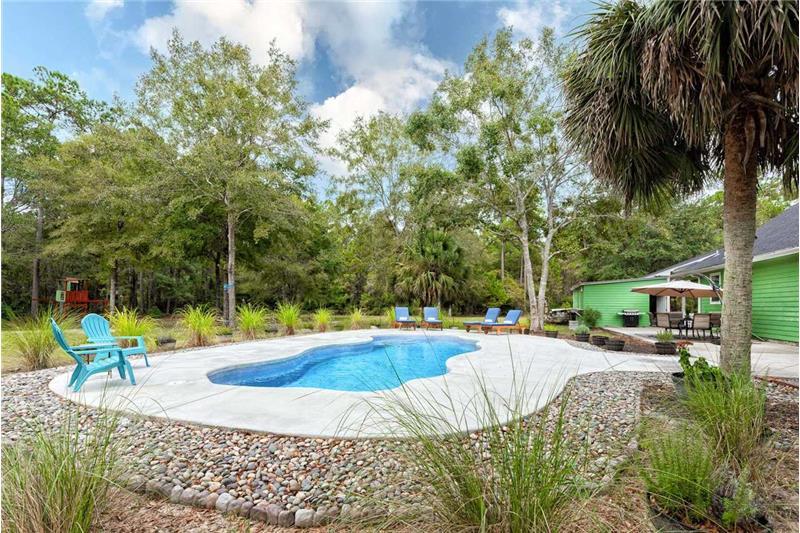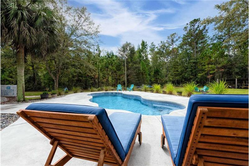 Stunning Farmhouse on Acreage! This charming and well appointed home situated on just over 11 acres in Crawfordville has so much to offer. The spacious and flowing floorplan features 10-foot ceilings throughout, a wood-burning stove in the living room that opens into the kitchen with an eat-in nook, island with bar seating, and updated appliances, a lovely master suite downstairs with over-sized his & hers walk-in closets, jetted tub & shower, and a family room upstairs perfect for entertaining! Out the back French doors you enter a true oasis featuring BRAND NEW fiberglass pool! Exploring the