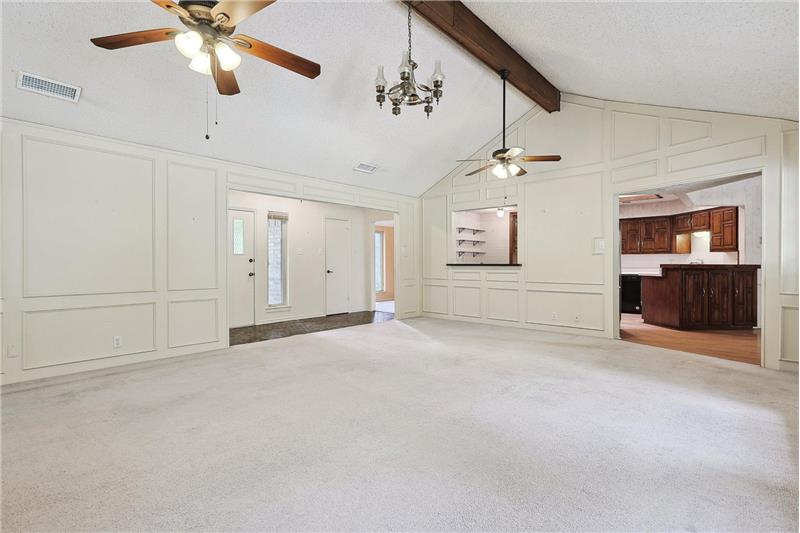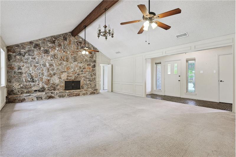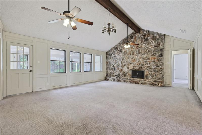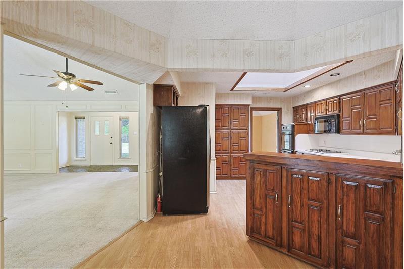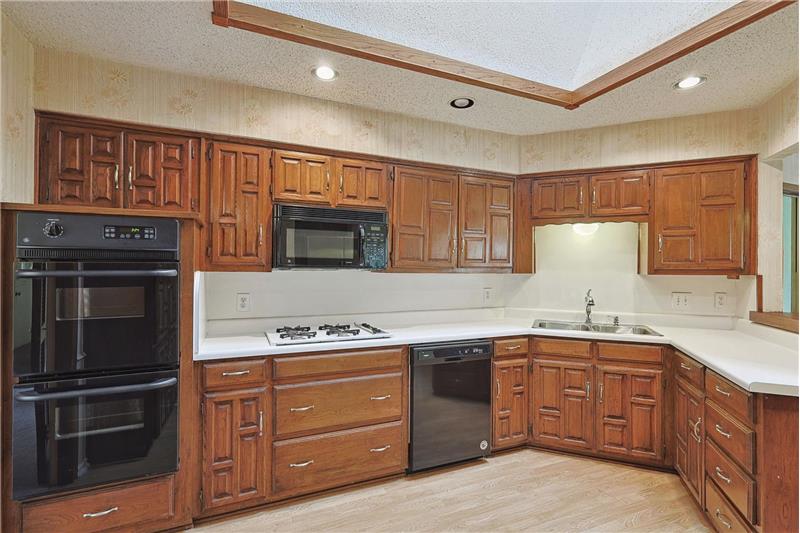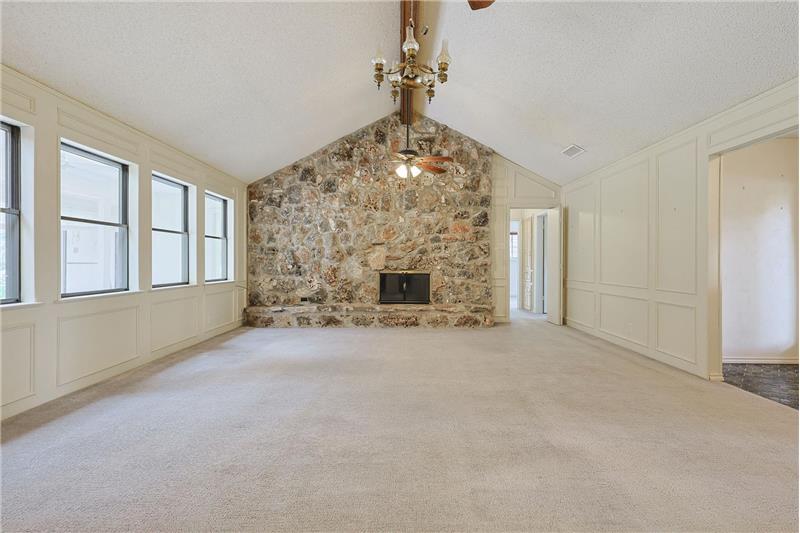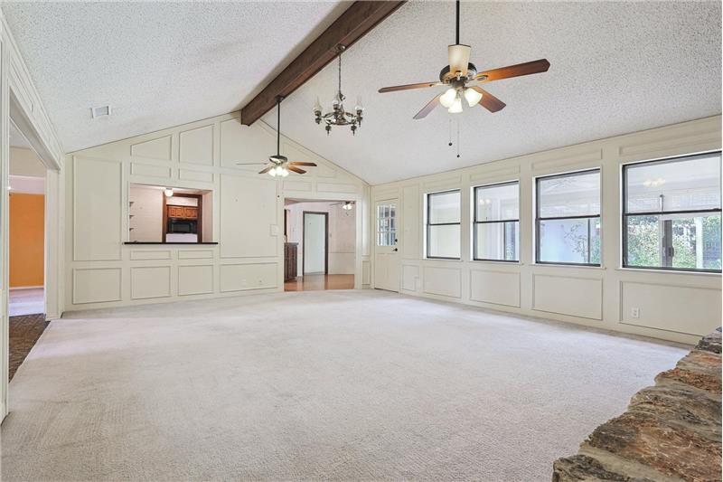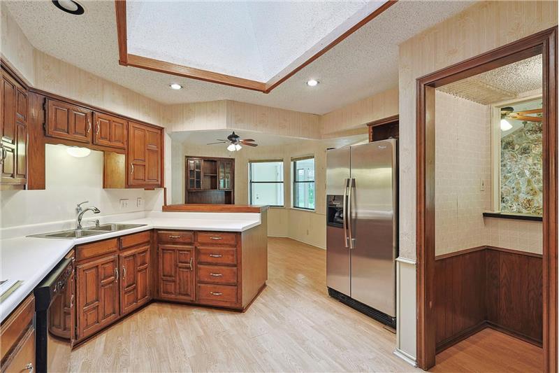 Calling all those with a vision! This one is a blank slate is ready for an amazing reboot! Single story ranch in the heart of Highland Village on a beautifully treed third acre lot. Floor to ceiling stone fireplace is the focal point of the expansive living room. The dining room is at the front of the house, just off the kitchen. There's tons of potential! Double ovens, gas cooktop, ample cabinet space, and fridge included. You'll appreciate all the space in the laundry room! Bedrooms are good size and on the same side. Private backyard! Enclosed sun room. Don't pass up this opportunity!