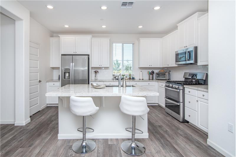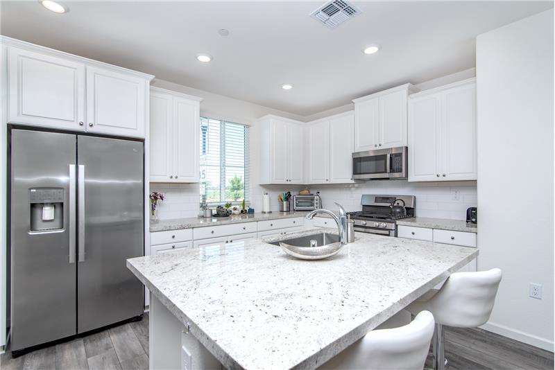 Gorgeous Lennar Home close to schools and parks. Featuring modern style and so energy efficient! Assumable 5.375% mortgage for military homebuyers. Great for multi-generational living with a bedroom & a full bath downstairs. The main bedroom is enormous with plenty of natural light. The ensuite bathroom features a large stall shower, soaking tub & a long counter with double sinks. The kitchen boasts granite counter tops with subway tile back splash, stainless gas range, microwave & dishwasher, large slab granite island with a dining bar plusa pantry closet. Solar & battery backup system