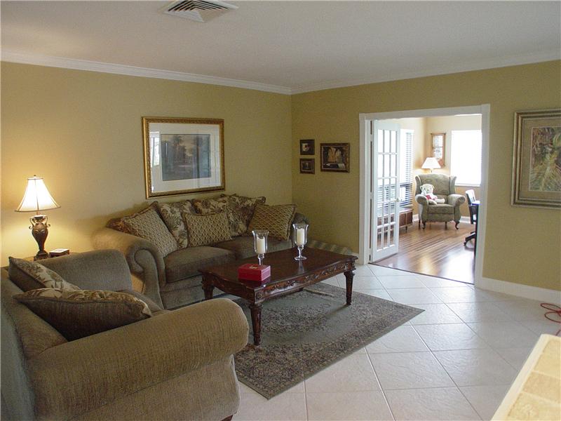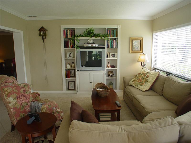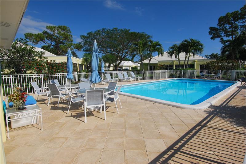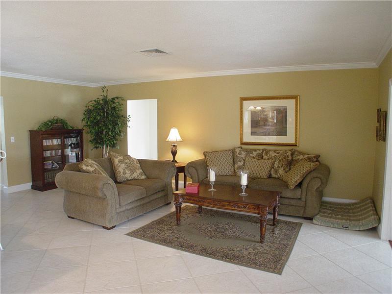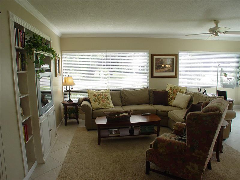 Delray Dunes Golf & Country Club....Gated and 24 hr manned gate house entry. Free-standing villa lives like a single family home without the same amount of maintenance. Spacious open floor plan. Large kitchen features butcher block counter tops, pass thru to dining rm, tray ceiling, large pantry closet and large laundry room with storage. Formal dining room, family room with built-in books shelves and slider door to private brick patio with privacy hedge. 3rd bedroom used as Den/Office with 2 small closets. 2nd bedroom design offers a private bedroom suite layout. Master bedroom measures 16x14