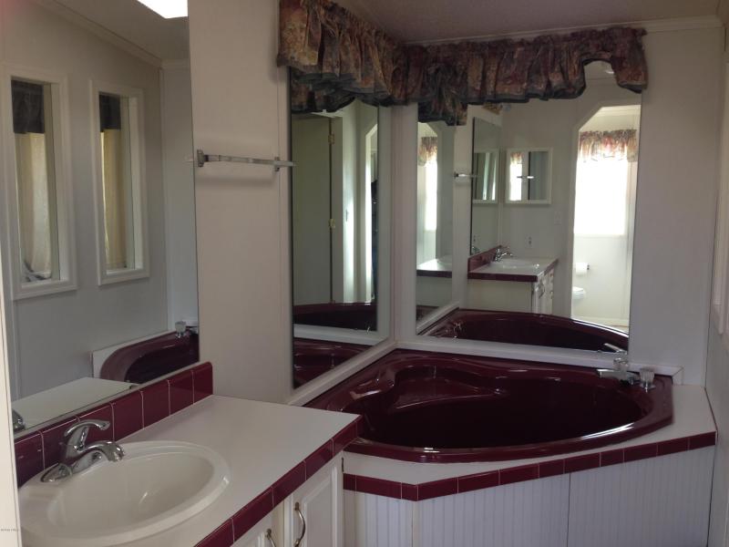 Over one acre of peace and quiet. Well maintained, very pretty mobile home on a great lot with a big back yard, circular drive and detached over sized garage. Master bedroom with adjoining bath with garden tub and separate shower. Additional two bedrooms with another full bath at other end. Big and bright eat in kitchen. Call today and check out this great deal.
