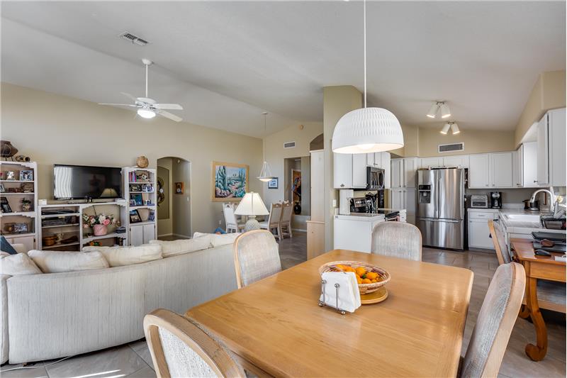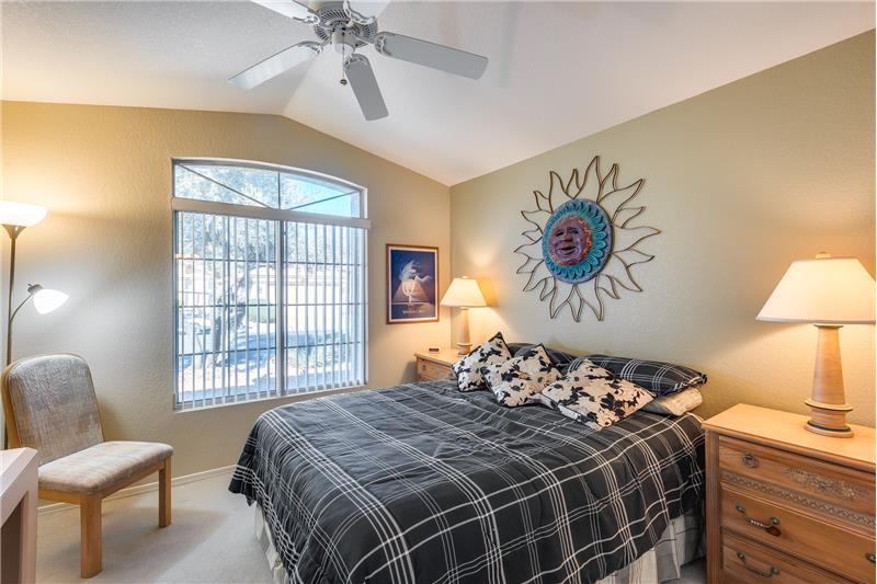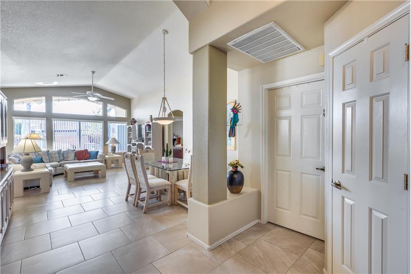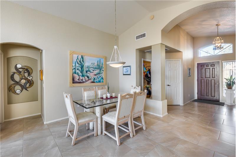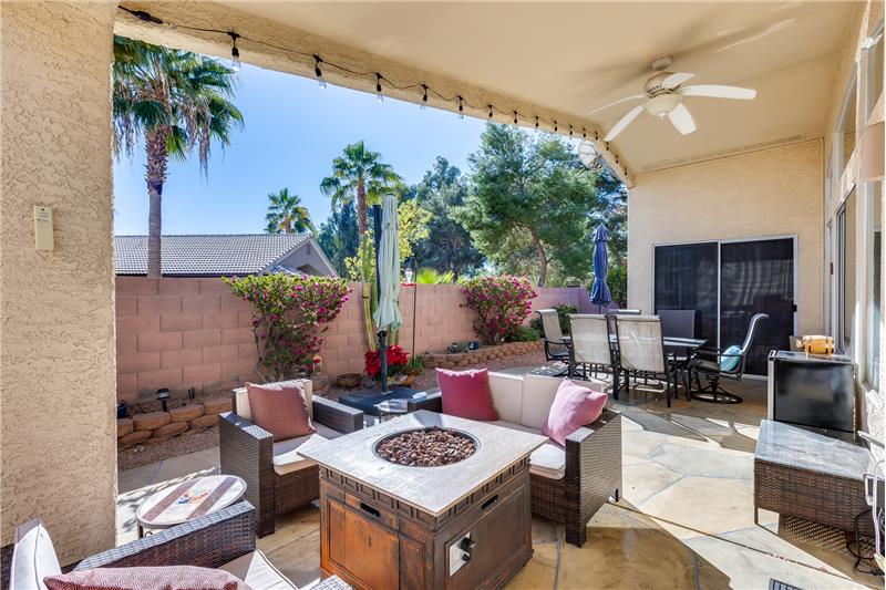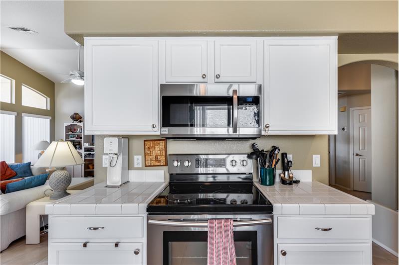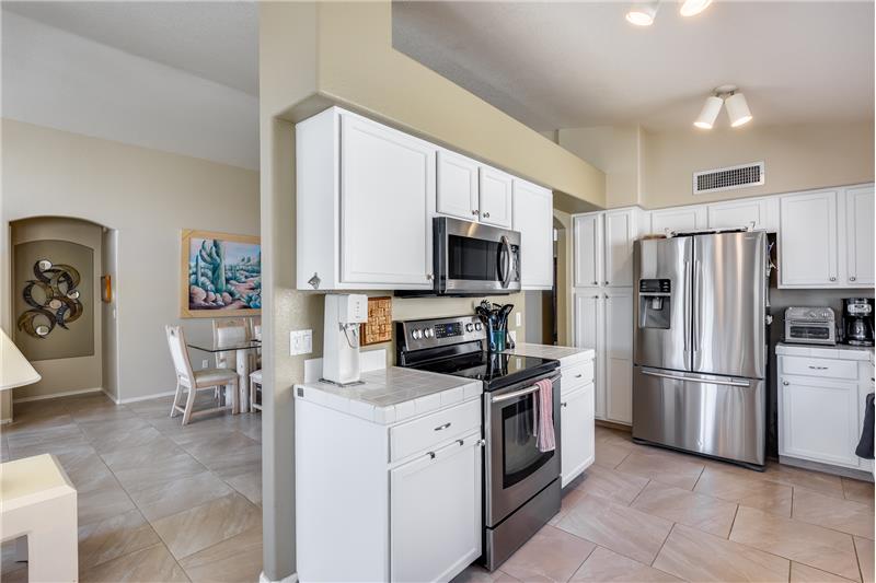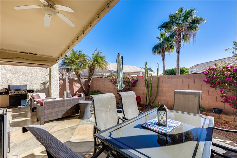 Resort Living in Sun Village - Welcome to this FURNISHED & EXPANDED Valencia plan. Vaulted ceilings and many windows let in the Arizona sunshine.HVAC (2020), Tile floors, painted kitchen cabinets with tile countertops and newer SS appliances are a few upgrades in this home. Entertain on the large south facing back patio. Located on a corner lot near the sport courts! Sun Village is a 55+ Gated, Resort Style Community. Enjoy the 18 hole par 3 golf course, gigantic heated pool & spa, pickleball, tennis, fitness gym, woodshop, billiards, onsite entertainment in our ball room and onsite restaurant