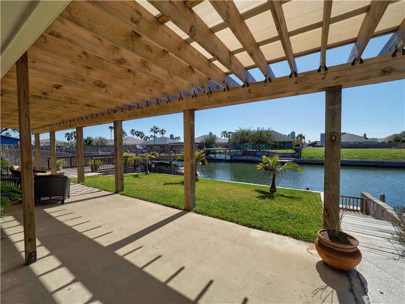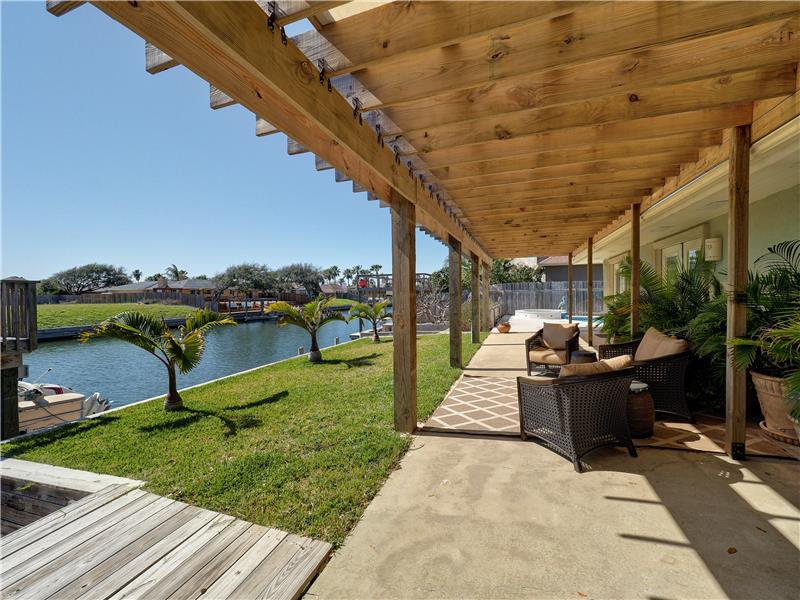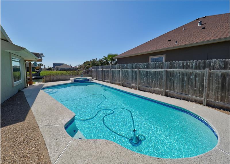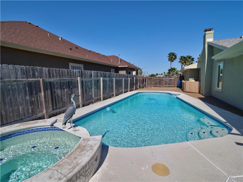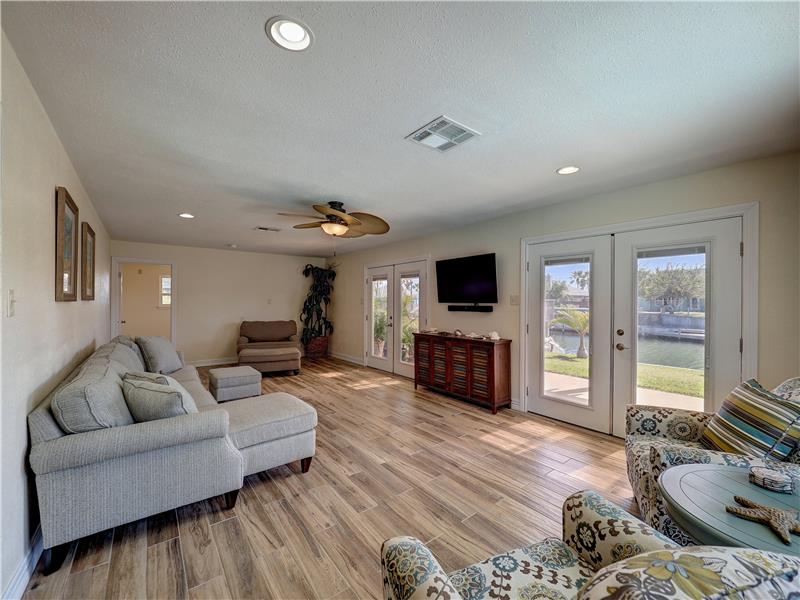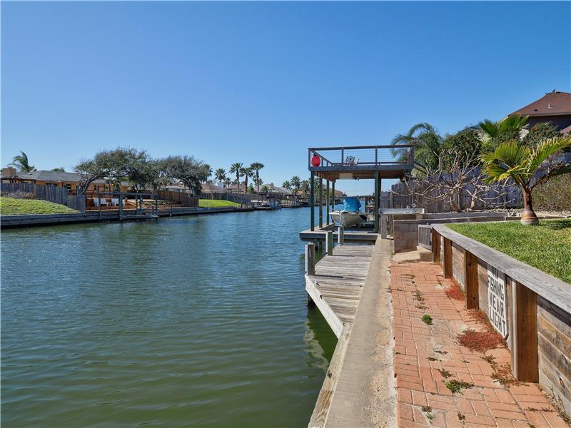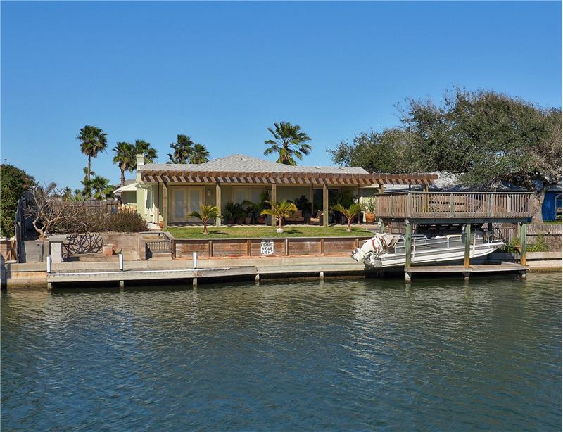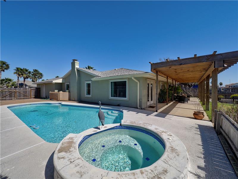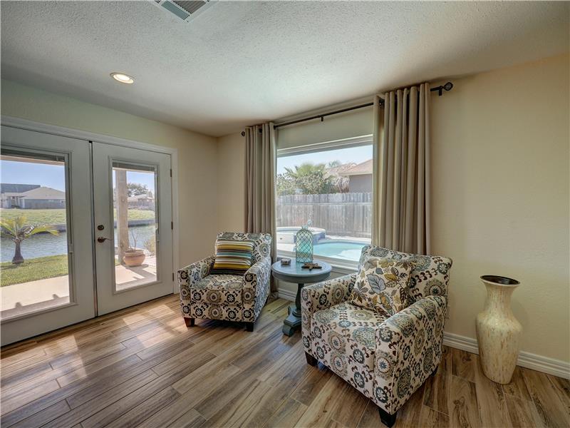 Recently updated and remodeled waterfront home on Padre Island, Tx. Three bedrooms. Two baths. Walk in shower in master. Open floor plan. Quartz countertops. Breakfast bar. There is also an extra living room with views of the water. Wood tile floor. Also an office or sewing room. Woodburning fireplace. Beautiful covered patio. The pool has been resurfaced. A hottub goes with the pool. Plenty room in backyard for plants. There is a boat lift with a deck on top. The beach is about 2 miles away.