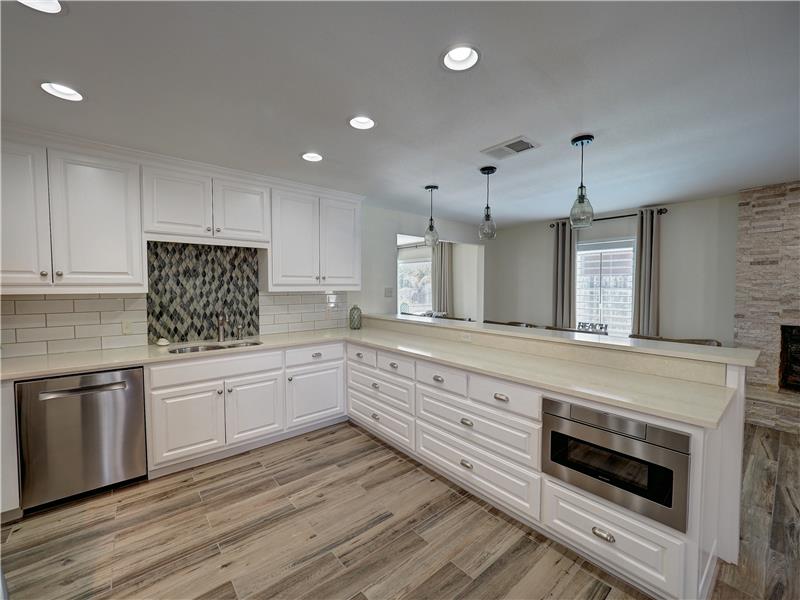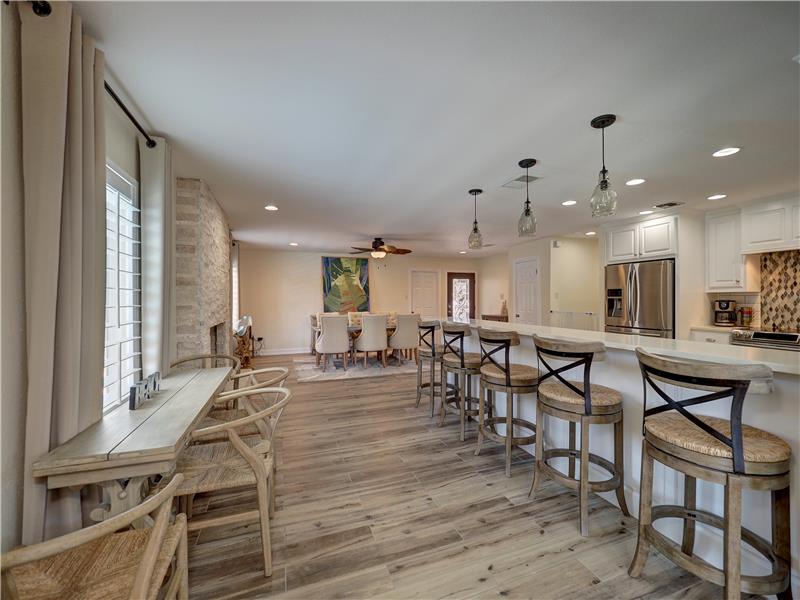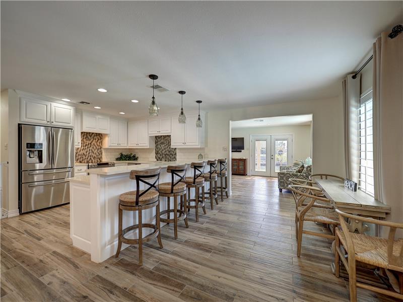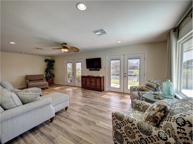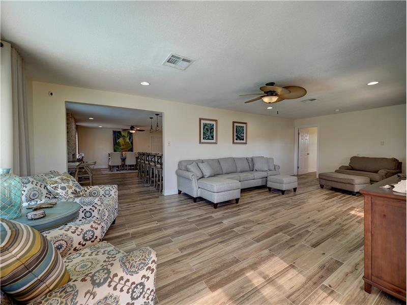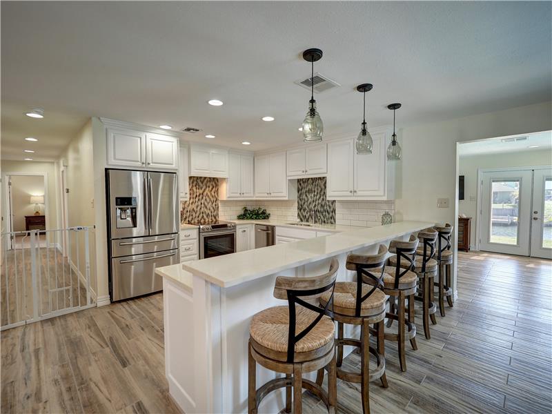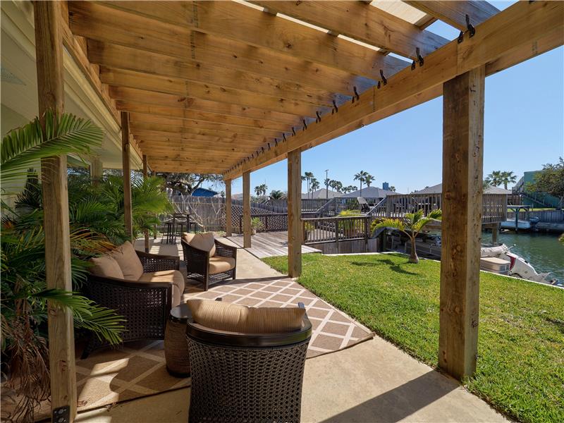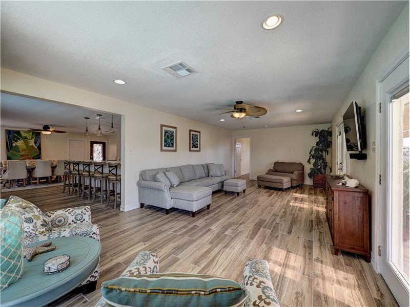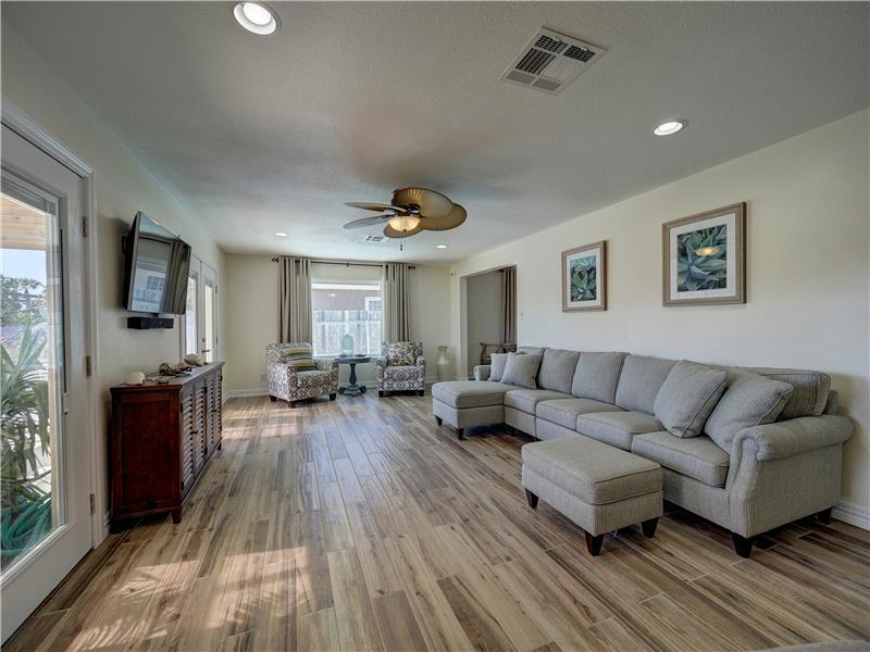 Recently updated and remodeled waterfront home on Padre Island, Tx. Three bedrooms. Two baths. Walk in shower in master. Open floor plan. Quartz countertops. Breakfast bar. There is also an extra living room with views of the water. Wood tile floor. Also an office or sewing room. Woodburning fireplace. Beautiful covered patio. The pool has been resurfaced. A hottub goes with the pool. Plenty room in backyard for plants. There is a boat lift with a deck on top. The beach is about 2 miles away.