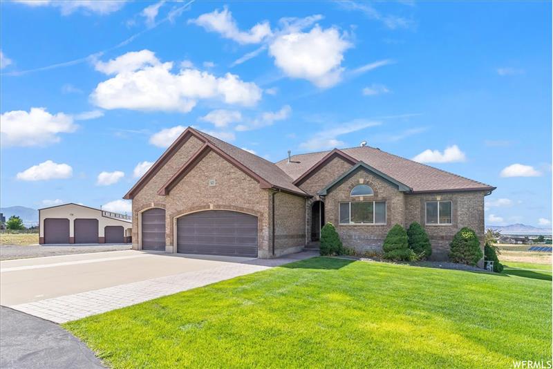 This 5-bedroom, 6 bathroom estate sprawls across 5 acres, providing a perfect blend of luxury and rural charm. Ideal for those who demand space, and style. Large primary bedroom with walk in closet on the main floor. Open floor plan with neutral colors. A cozy theater room is your go-to for movie nights, and a 5x5 walk-in safe located in the basement. On the exterior, the property boasts a spacious 54x84 detached garage equipped with 12" and 14" doors, making it a breeze to store your RV, boat, or tractor. Hurry to see this! Check this out for more details: https://bit.ly/3sADBQW