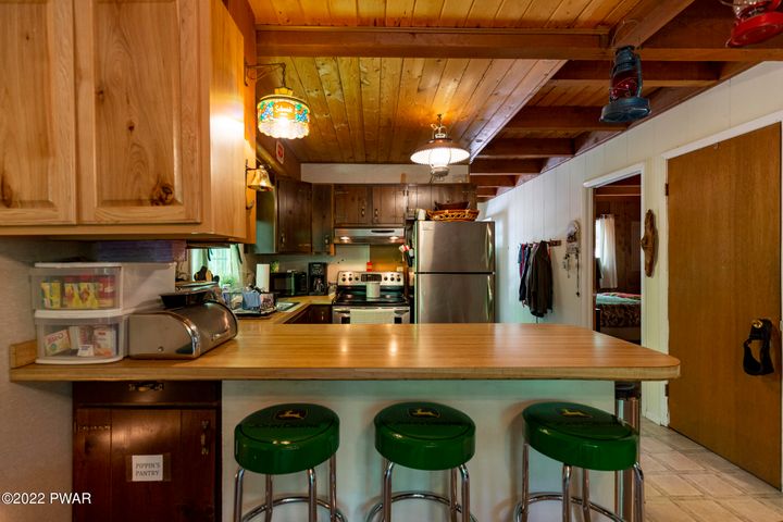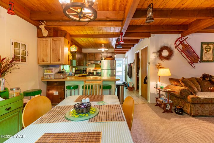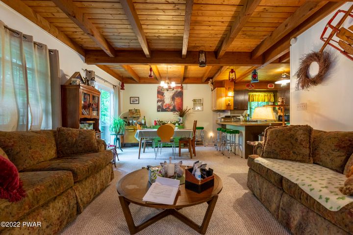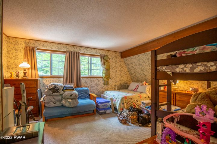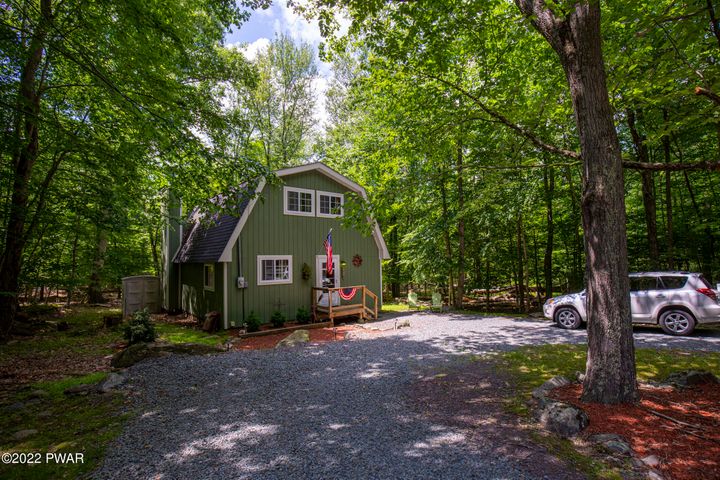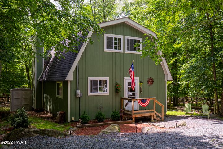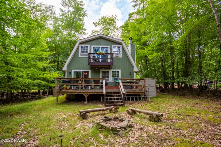 Backing up to 31 acres of green space, this home provides privacy while still sitting inside a gated, “Gold Star” awarded community: The Hideout. Inside is an open floorplan, cozy fireplace in the living room, pretty beamed ceilings. Outside find a very private back yard deck and a balcony off one of the second floor bedrooms. Sitting just down the road from the community golf course, clubhouse, and indoor recreation center, but still have peace and privacy.