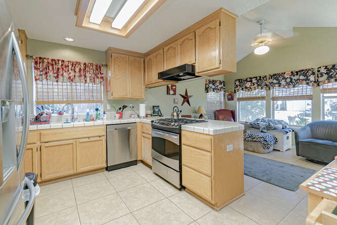 Lovely single story with stunning entry, separate family room and living room, dining room, indoor laundry, three bedrooms, and two bathrooms. Custom home features include Cathedral ceilings in living spaces and master suite, crown molding in the dining room, picture windows to the yards, walk-in master closet, master slider to the back patio, AND an attic roof-truss system for future remodel creativity. The large kitchen has extended cabinetry, stainless appliances, and a gas range for you gourmet home chefs. All this plus mature landscaping and a spacious back patio for relaxing and dining.
