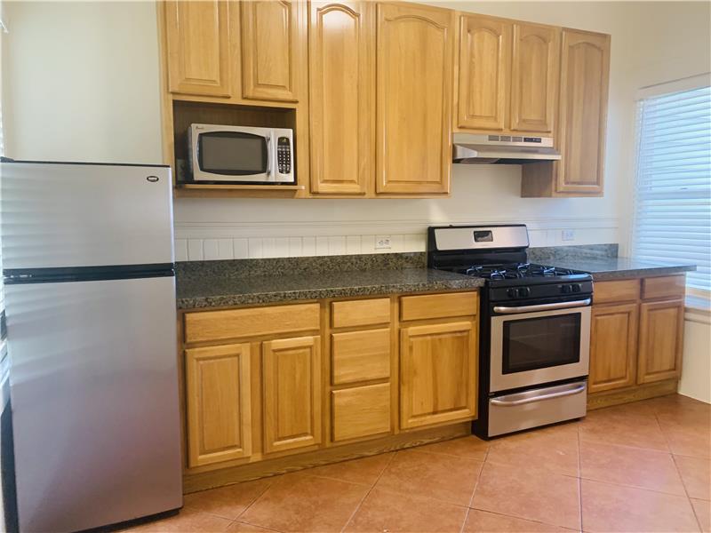 A quiet and newly updated spacious 1 bedroom/1 bathroom with lots of STORAGE! This unit is in the rear of the building, with modern updates with lots of charm - hardwood flooring throughout the unit, and a newly tiled split bathroom. A large and inviting hallway with bright living room, and lots of storage closets! The HUGE UPDATED kitchen and pantry area is large enough for a dining table, with plenty of natural light with Stainless Steel appliances, gas stove, dishwasher and refrigerator with plenty of STORAGE and cabinet space The hallway is spacious with a a built in desk/offic