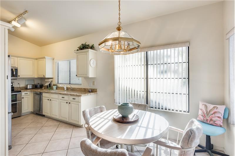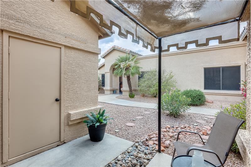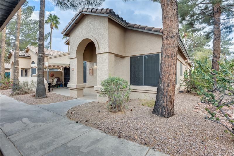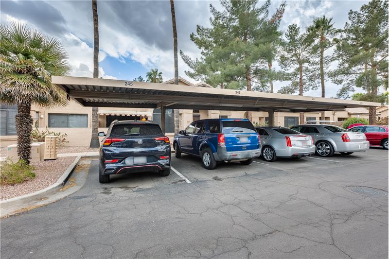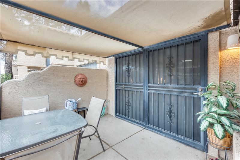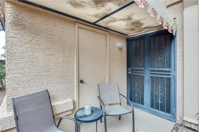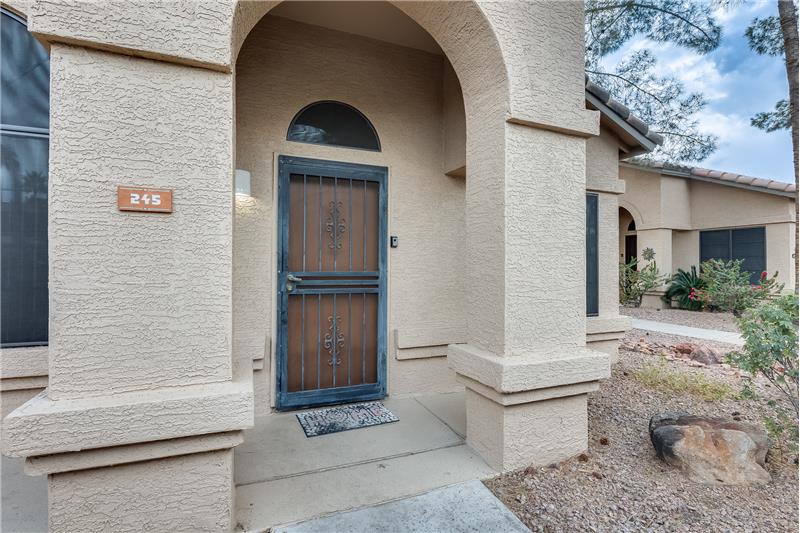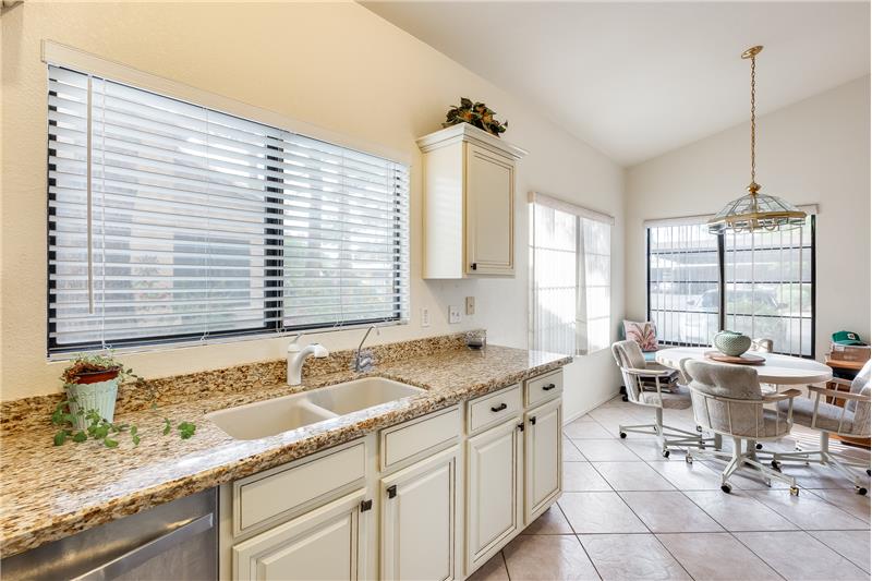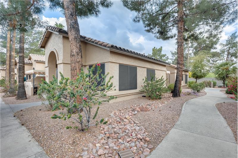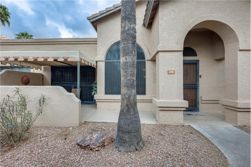 Nicely updated Los Cabos Model. FURNISHED Painted cabinets w/many pullouts, newer SS appliances, double oven, Granite counters too! Bathrooms remodeled the same. Tile floors in main areas. Each bedroom has exit with security door to patio. Soaring ceilings give a much bigger feel to unit. Newer H2O tank, newer sunscreens. Most furniture and furnishings convey. Separate storage off small patio, and one assigned covered parking spot. Own your piece of paradise in beautiful Security Gated Resort Living Sun Village!