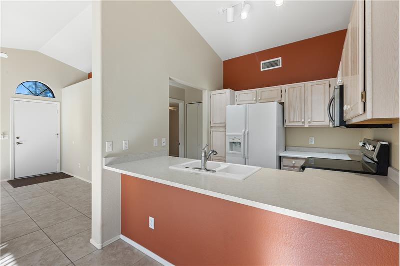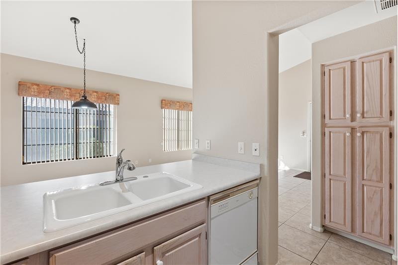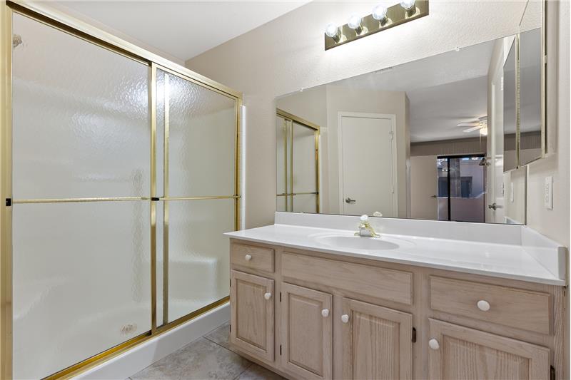 Nice Unit in 55+ Gated Sun Village Resort! Vaulted ceilings, tile floors throughout, Split 2 bedroom plan, with each room having their own bathroom. HVAC just a few years old. Water heater replaced and circulation pump installed too. Solar tube and skylight for extra light in bathrooms. Full size washer and dryer included. Large patio with privacy wall. Covered parking steps away from front door! Enjoy the 18 hole par 3 golf course, gigantic heated pool & spa, pickleball, tennis, fitness gym, woodshop, billiards, onsite entertainment in our ball room and onsite restaurant!