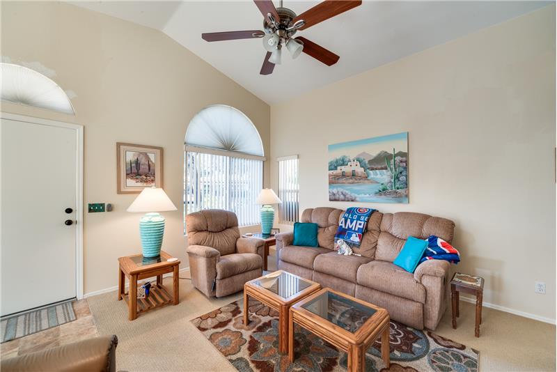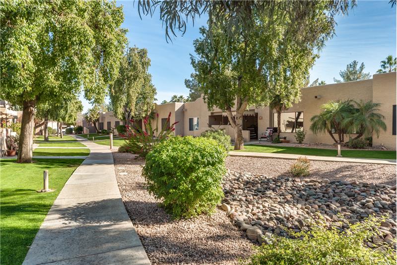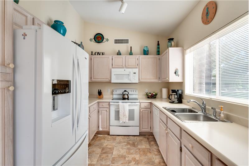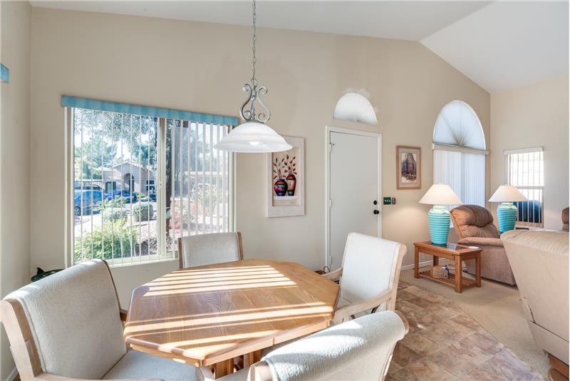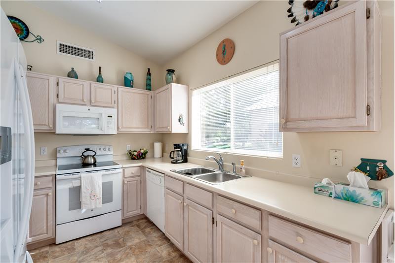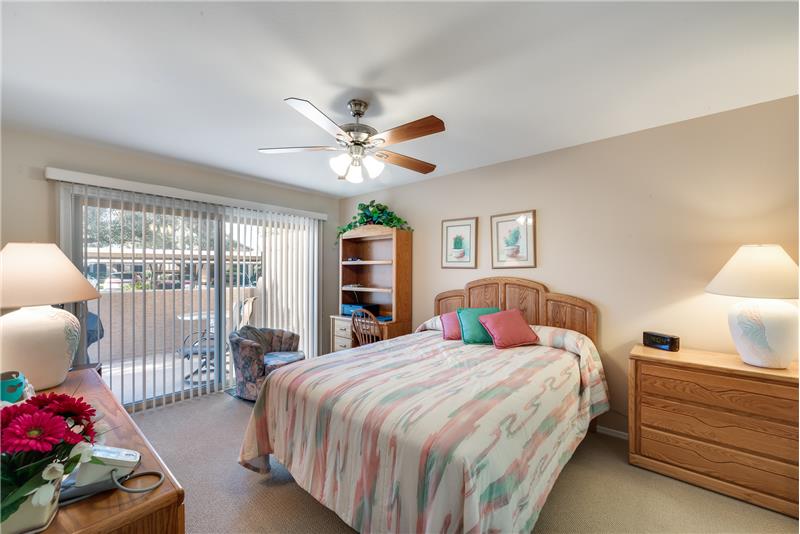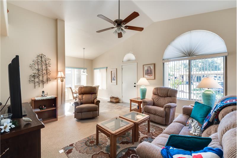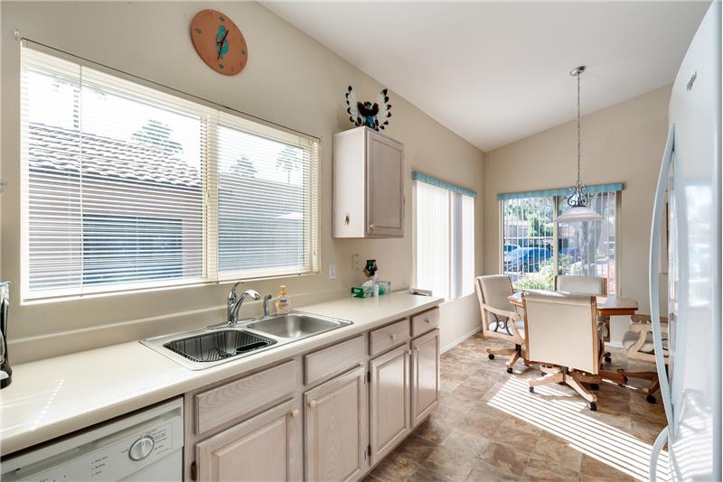 Los Cabos in Beautiful Gated Sun Village Resort. Great location near "THE" green space. Vaulted Ceilings, Patio's off both bedrooms with the master bedroom having Slider out to West Facing patio. Newer full sized Washer/Dryer, and Appliances. Vinyl Windows put in last year. Nice South facing bright kitchen and dining area! Don't miss this one.