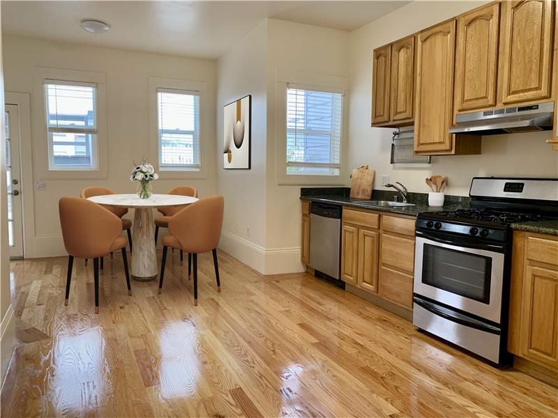 A quiet and newly updated spacious 2 bedroom/1 bathroom with lots of STORAGE! This unit is a full floor space with modern updates with lots of charm - hardwood flooring throughout the unit, and a newly tiled split bathroom. A large and inviting hallway with bright living room, and lots of storage closets! The HUGE UPDATED kitchen and pantry area is large enough for a dining table, with plenty of natural light with Stainless Steel appliances, gas stove, dishwasher and refrigerator with plenty of STORAGE and cabinet space The bedrooms are spacious with closets and storage space.