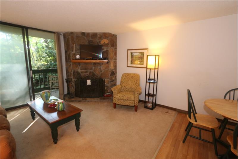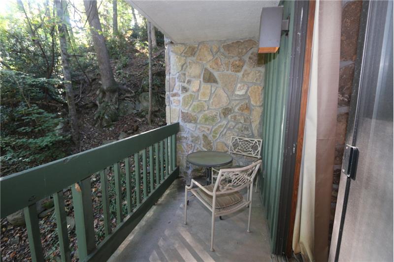 One-bedroom, one-bath condo located in the heart of Gatlinburg. This condo sits directly above a stream, and you can walk out onto the balcony to view it. As you walk out the front door, you view the stream as it comes off the waterfall.. Along with the swimming pool off to the right. There are laundry machines located downstairs. The condo is fully furnished. Ready to be used as a vacation home or as a short-term rental. A wood-burning fireplace with a stone hearth. Put in your own personal decor and be ready to rent