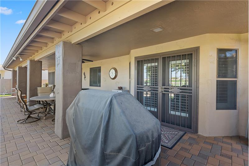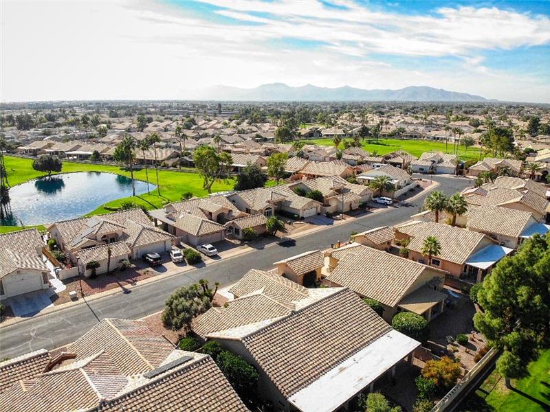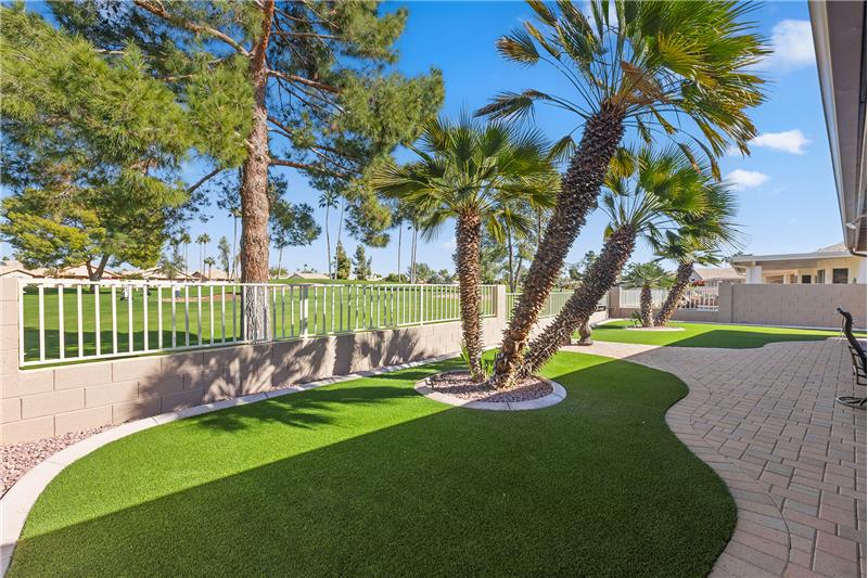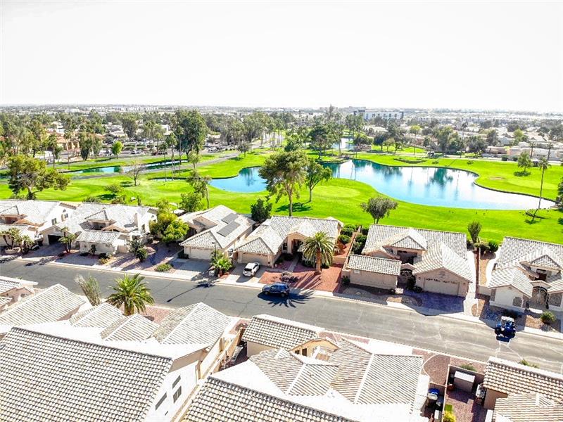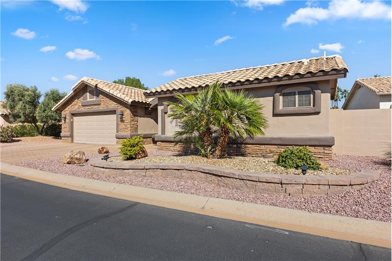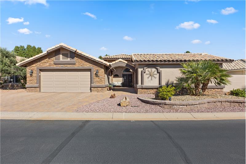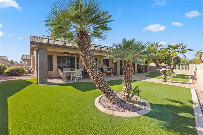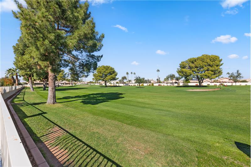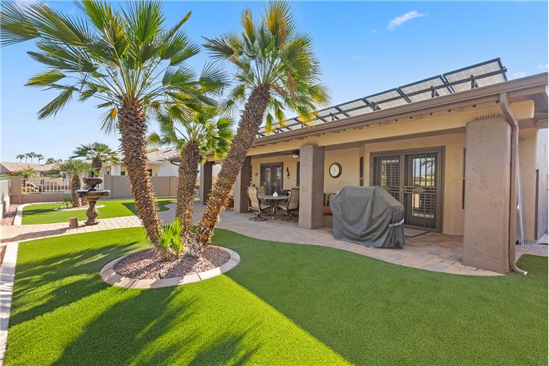Gem in 55+ Gate Beautiful Cimarron plan + Casita on the Golf Course! Vaulted ceilings, Hardwood floors. Large kitchen w/island opens to Family room and breakfast nook with golf course views. Large Formal living and dining area. Plantation Shutters & Ceiling Fans. and updated lighting fixtures. Corian countertops in kitchen. Spacious Master Bedroom & Master Bath, Custom desk in HUGE master closet. Custom Epoxy garage floors. Covered back patio and beautiful back yard with turf boarders the golf course! Owned Solar System too!