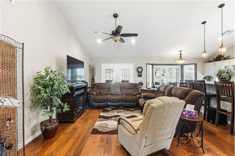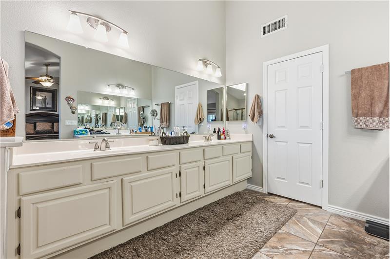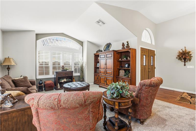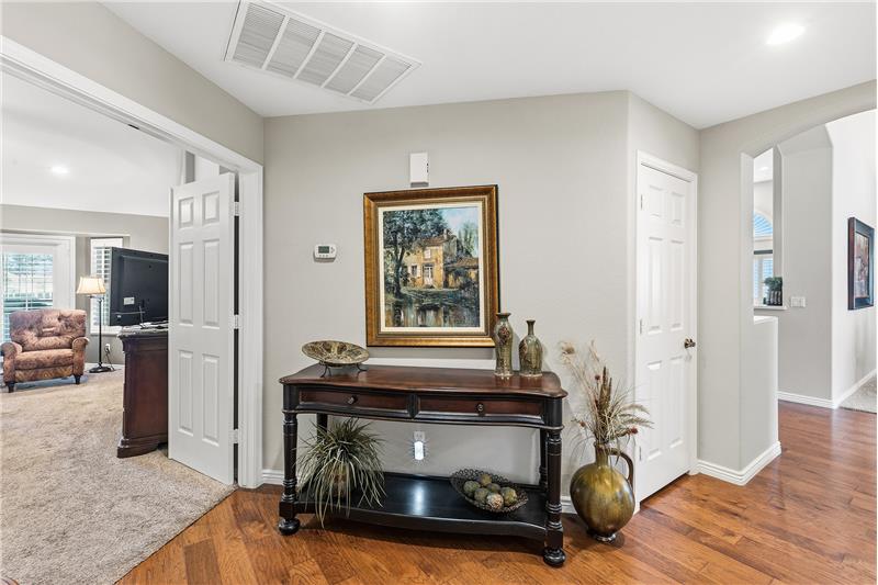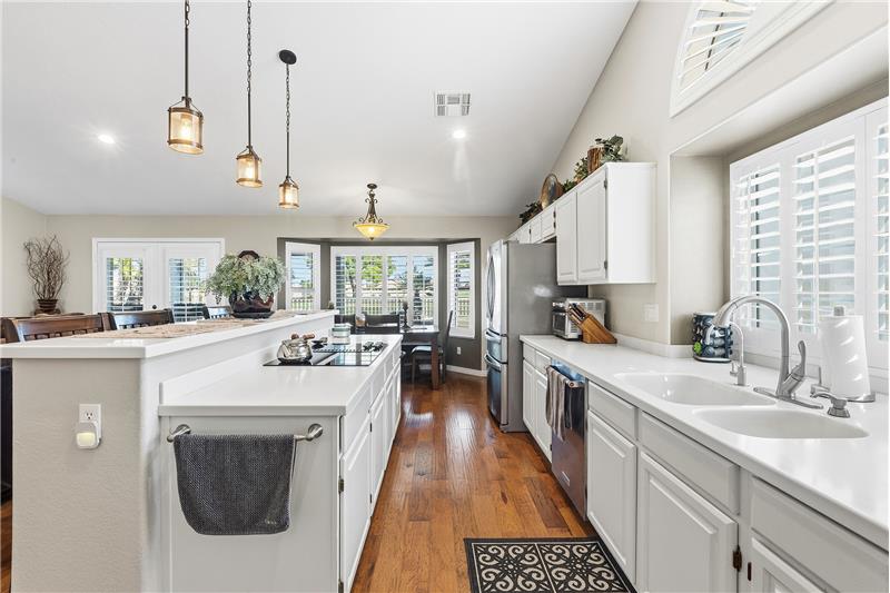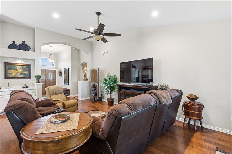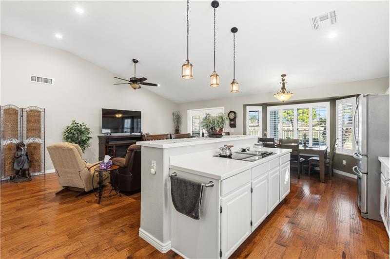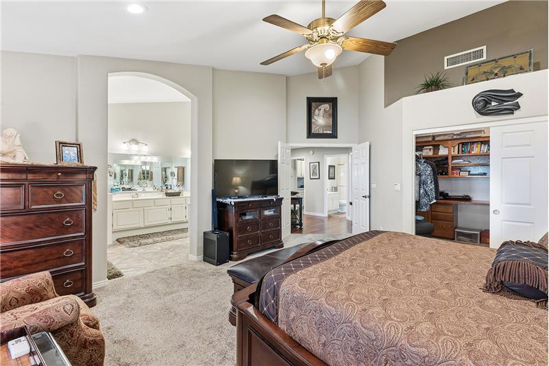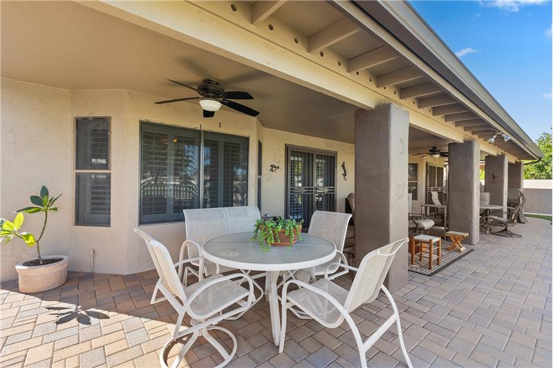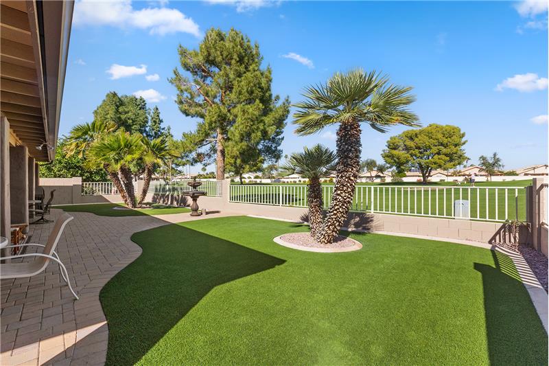 Gem in 55+ Gate Beautiful Cimarron plan + Casita on the Golf Course! Vaulted ceilings, Hardwood floors. Large kitchen w/island opens to Family room and breakfast nook with golf course views. Large Formal living and dining area. Plantation Shutters & Ceiling Fans. and updated lighting fixtures. Corian countertops in kitchen. Spacious Master Bedroom & Master Bath, Custom desk in HUGE master closet. Custom Epoxy garage floors. Covered back patio and beautiful back yard with turf boarders the golf course! Owned Solar System too!