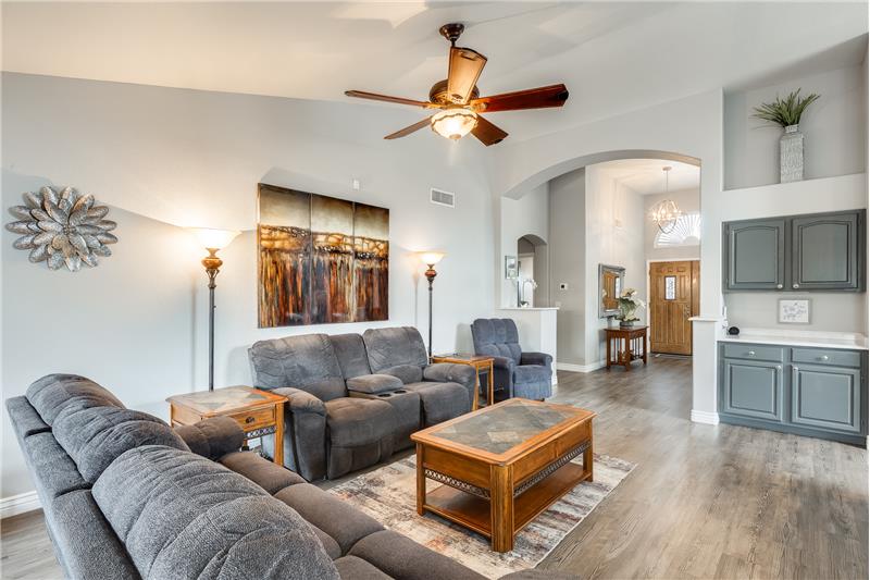 This stunning property offers a unique blend of luxury, comfort, and functionality, perfect for those seeking an exceptional living experience. Main Residence: 2 spacious bedrooms. An open-concept living area featuring a state-of-the-art projection TV with theater seating, ideal for movie nights at home. Modern kitchen equipped with top-of-the-line appliances and ample counter space for culinary enthusiasts. Guest Casita: A private guest casita provides a comfortable retreat for visitors. Outdoor Amenities: Challenge yourself on your personal putting green Expansive back patio with four ceilin