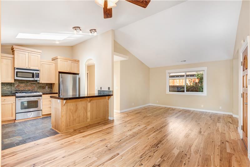 This 3-bedroom, 2-bath Craftsman home provides convenient access to parks, schools and trails. Built in 1992, this single-level home has an open floor plan with a great room, updated kitchen and a dining area that accesses the fenced outdoor deck. An attached, 520sf garage accommodates two vehicles and outdoor gear, and the fenced front yard offers privacy from the street with low-maintenance landscaping. Additional updates include new dishwasher (2017), new hot water heater (2016), hickory hardwood flooring, new cabinets and countertops (2013), deck stain (2025) and a new 50yr roof (2018).