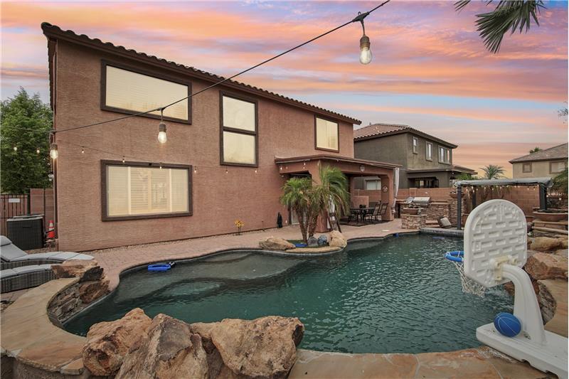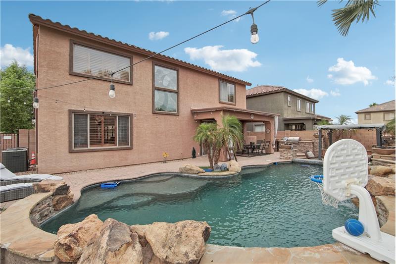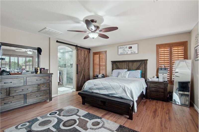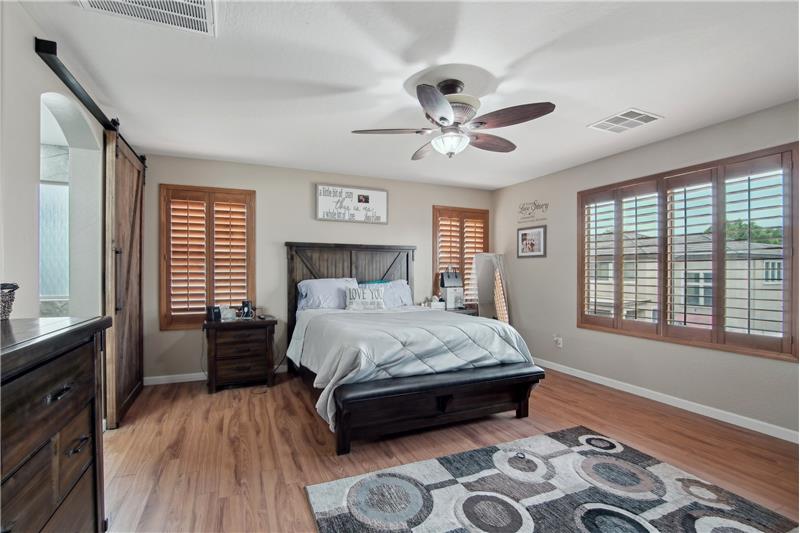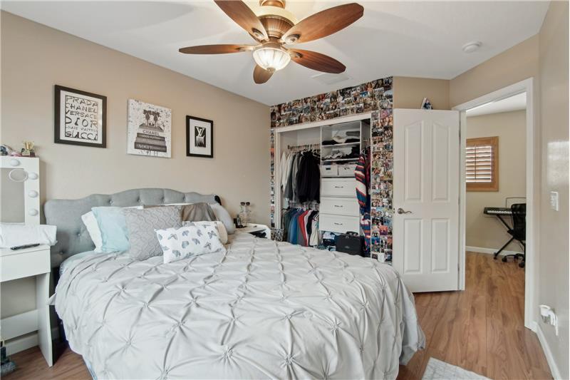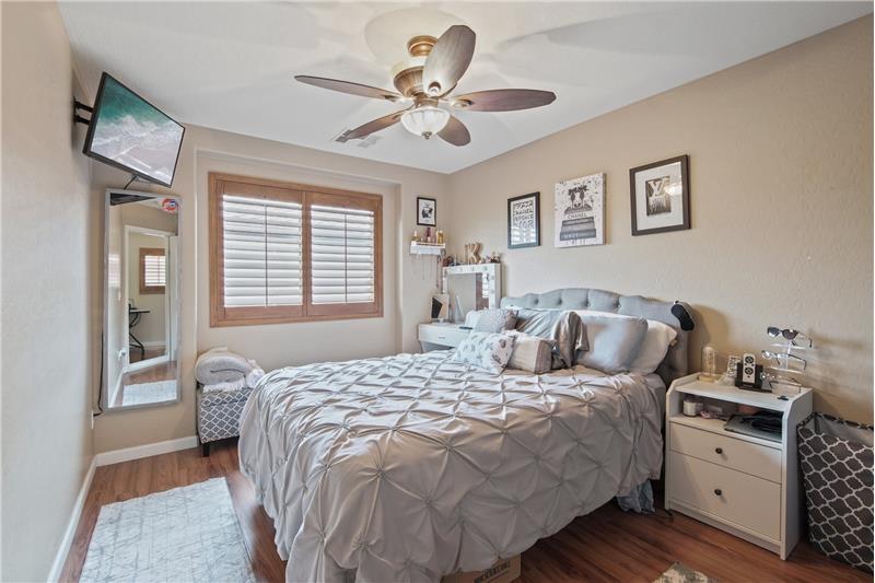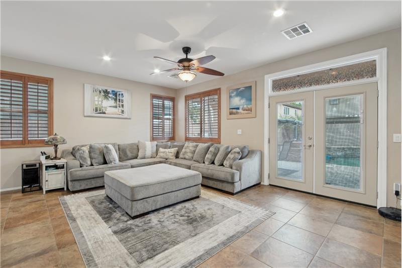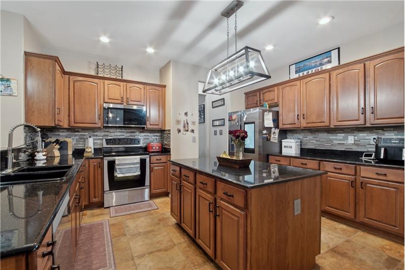 This beautifully upgraded 3-bedroom + loft home has been lovingly maintained and feels just like a model. From the moment you walk in, you'll notice the thoughtful touches: no carpet anywhere, just sleek 18'' tile and updated laminate floors, plus plantation shutters, custom paint, and stylish lighting and fans throughout. The kitchen is the heart of the home, and this one shines with granite counters, a center island with breakfast bar, stainless steel appliances, and rich maple cabinetry—perfect for everyday living or entertaining a crowd.