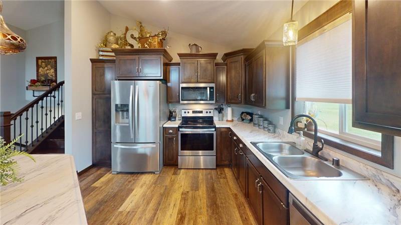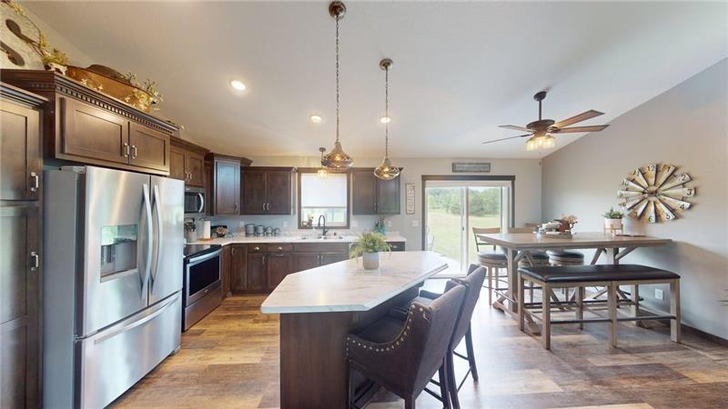 Set on a spacious 2.9-acre lot, this beautifully maintained 4BR/3BA three-level split home in Princeton offers exceptional curb appeal and a heated four-car garage. Step inside to an open-concept main level filled with natural light and vaulted ceilings that flow throughout the living/dining/kitchen spaces. The kitchen features stainless steel appliances, and a center island seamlessly connecting to the dining area—which offers walkout access to a generous patio, ideal for entertaining or relaxing outdoors. Upstairs, you'll find a full bathroom and three generously sized bedrooms, including...