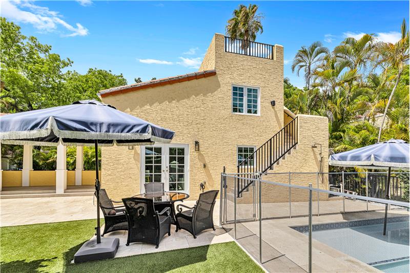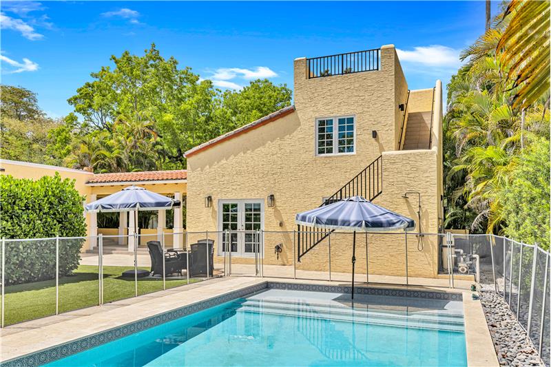 Discover timeless elegance in this beautifully updated 4-bedroom, 3-bathroom Coral Gables home with a versatile den, situated on an expansive 9,500 sq ft lot. The updated kitchen boasts sleek quartz countertops, SS appliances, a gas stove and custom cabinetry—perfect for both everyday living and entertaining. Impact windows and doors. Bright primary bathroom with dual sinks, hardwood floors throughout & built-out walk-in closets. The private yard has a large pool ,astro turf and a stunning 2 story guest house with 2 story living space , bathroom and loft style bedroom. Perfect for multi-g ...