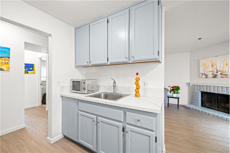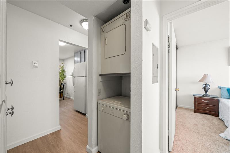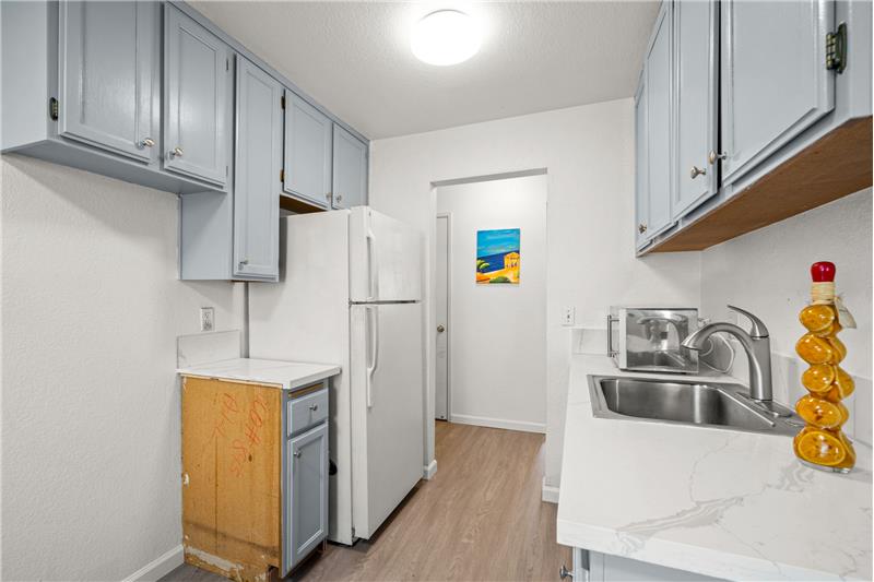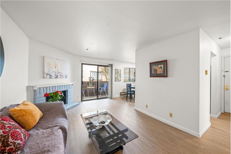 Great Location, Rear opportunity to own this beautiful unit, Come and see for yourself, Warm, beautiful and updated, This is the first unit of the building, it has 2 garages, Elevated first level, as you walk in to your left is see the updated kitchen, Corks counter top, newly refines cabinet, Vinyl flooring and formal dining area, Then spacious and warm living room with fireplace and sliding door to deck, 2 spacious bedroom and 1 updated bathroom. Laundry in the unit. Storage. This property is located near to mall & shops, restaurant and 580 freeway access.